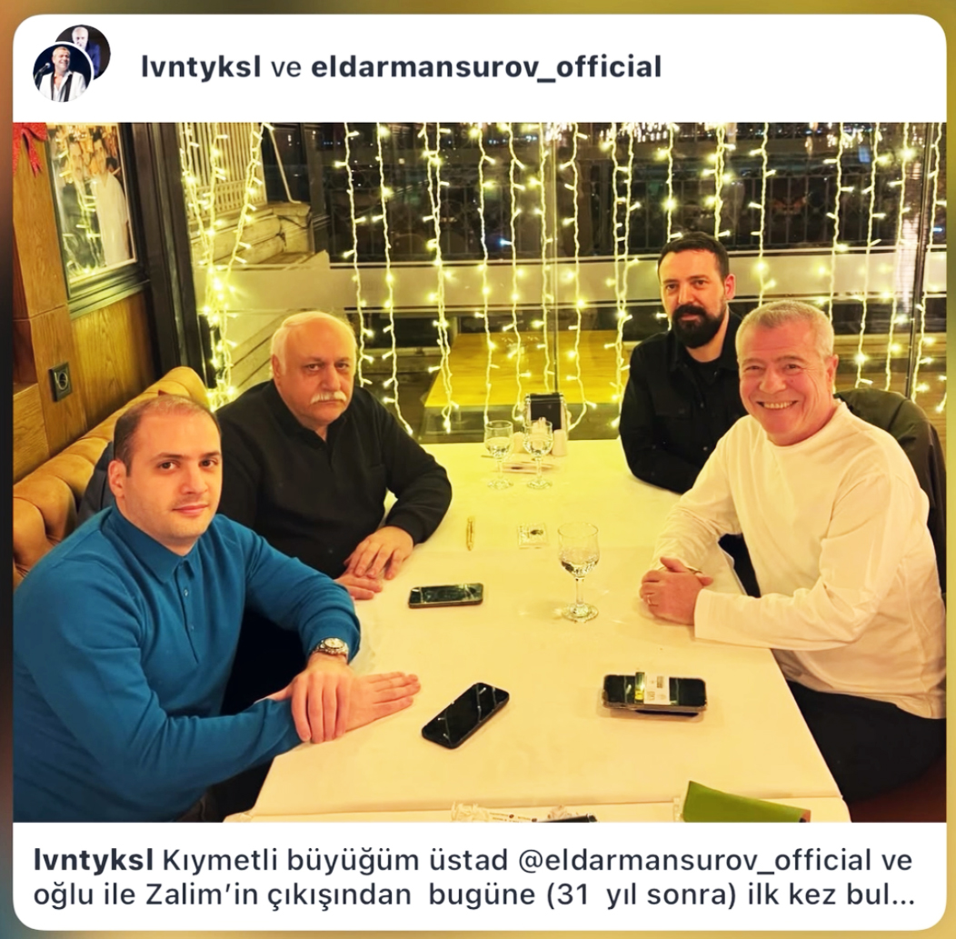 “Türkiyənin məşhur müğənnisi Levent Yüksel 31 il əvvəl “Zalim” mahnısını oxuduqdan sonra, nəhayət ki, bu il onunla görüşdük”, - bəstəkar paylaşımında bildirib.