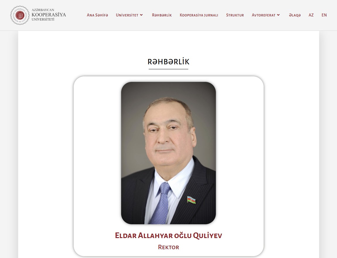 “Qafqazinfo”nun məlumatına görə, 75 yaşlı Eldar Quliyev həm deputat, həm də Kooperasiya Universitetinin rektoru kimi fəaliyyət göstərir, bu barədə təhsil ocağının saytında da məlumat yer alıb. E.Quliyevin hazırda rektor olduğunu universitetin Mətbuat xidməti də saytımıza təsdiqləyib.