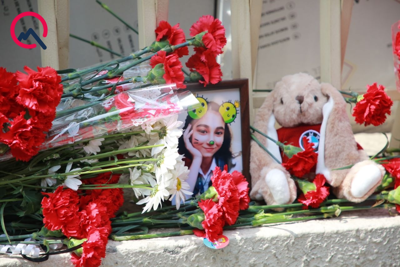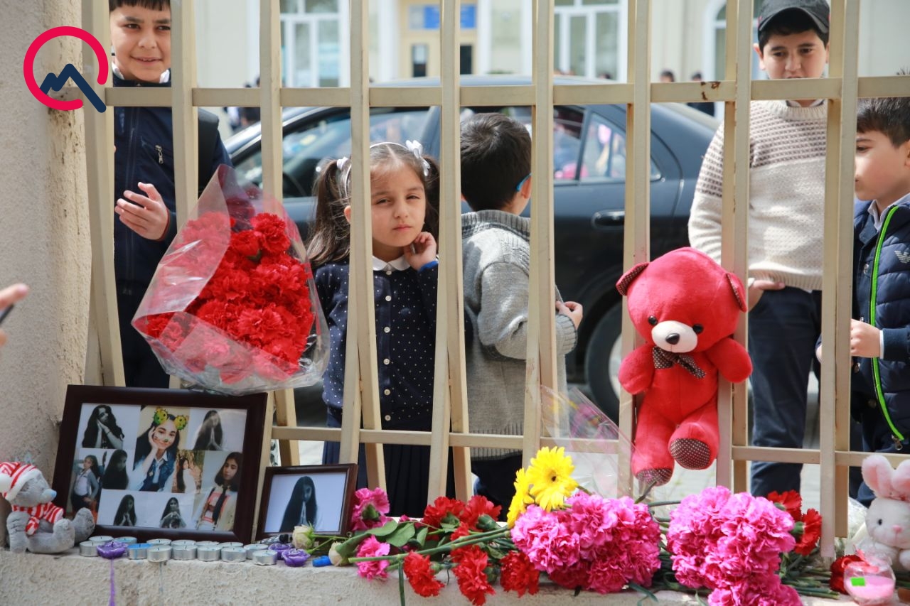 162 nömrəli məktəbin qarşısında Elina Hacıyevanın anım mərasimi keçirilir.