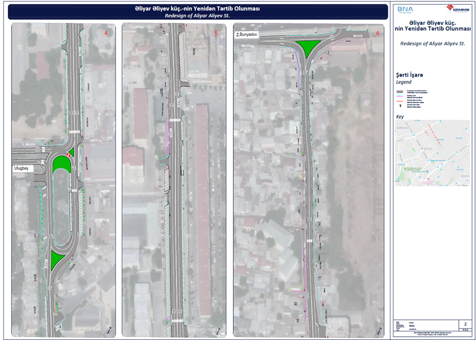 Piyada təhlükəsizliyinin maksimum həddə çatdırılması üçün eyni səviyyəli piyada keçidlərinin önündə xüsusi çıxıntılar inşa olunacaq. Əliyar Əliyev küçəsindən Təbriz küçəsinə dönmək istəyən nəqliyyat vasitələri üçün əlavə sola dönmə zolağı təşkil ediləcək.