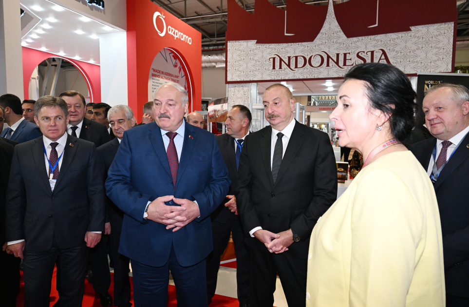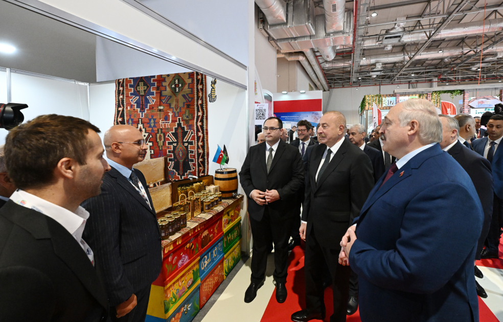 Bu gün Azərbaycan Prezidenti İlham Əliyev və Belarus Prezidenti Aleksandr Lukaşenko Bakı Ekspo Mərkəzində XVII Azərbaycan Beynəlxalq Kənd Təsərrüfatı - “Caspian Agro” və XXIX Azərbaycan Beynəlxalq Qida Sənayesi - “InterFood Azerbaijan” sərgiləri ilə tanış olublar.