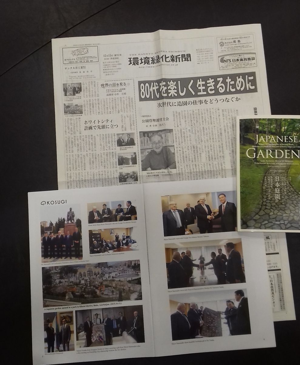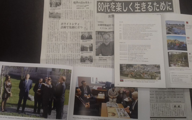 Sonra şirkət rəhbəri Xətaidəki “Yapon bağı” haqqında məlumatların da öz əksini tapdığı Yapon bağları haqqında “Japanese Gardens” kitabını və Xətai nümayəndə heyətinin Yaponiyaya səfərindən bəhs edən, Yaponiyada 50000 tirajla çap olunan “The KankyoRyokka Shimbun” qəzetini də R. Məmmədova təqdim edib.