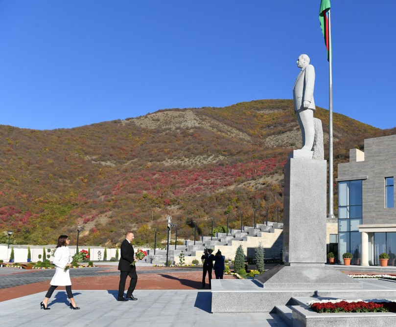 “Qafqazinfo” xəbər verir ki, İlham Əliyev və birinci xanım Mehriban Əliyeva ümummilli lider Heydər Əliyevin Şəki şəhərindəki abidəsi önünə gül dəstələri qoyublar.