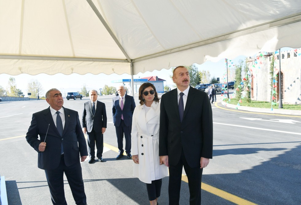 Ölkə başçısı İlham Əliyev və birinci xanım Mehriban Əliyeva eyni zamanda, Şəki-Kiş avtomobil yolunun açılışında iştirak ediblər.