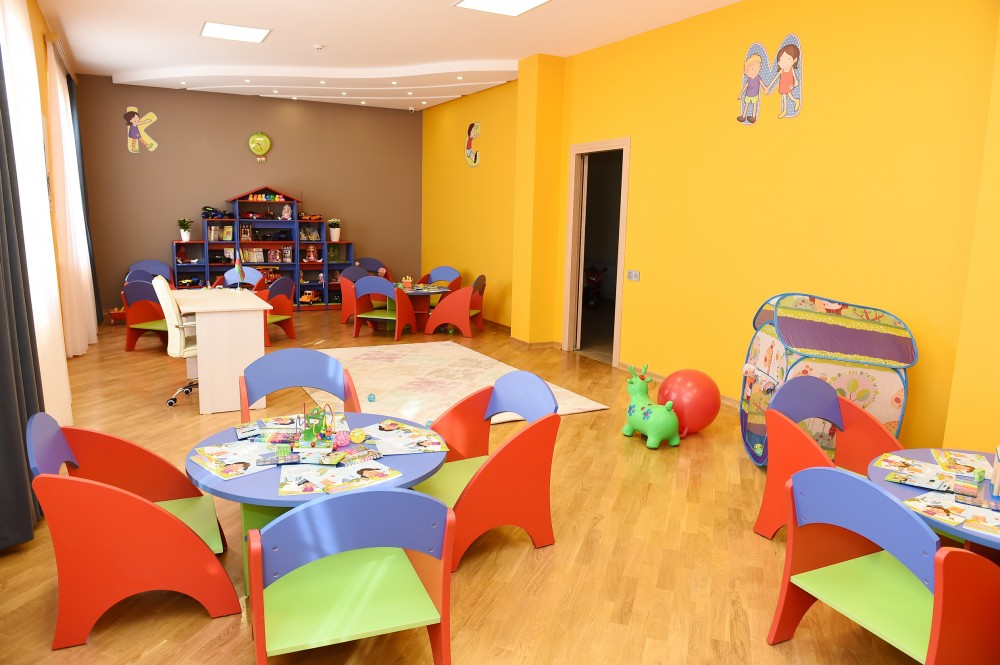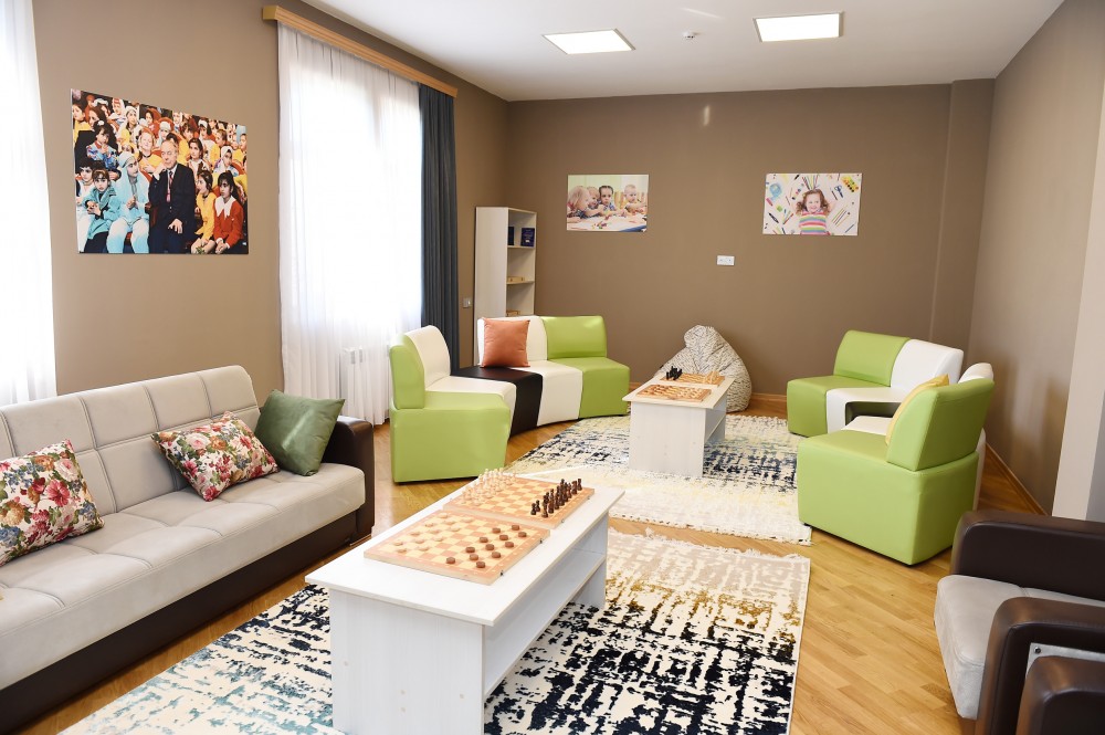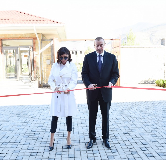Prezidentlə xanımı daha sonra Heydər Əliyev Fondunun təşəbbüsü ilə Şəki şəhərində qarışıq tipli uşaq evi üçün inşa olunan yeni binanın açılışında iştirak ediblər.