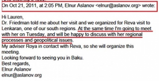 “Stratfor” bossunun bu tövsiyələri həmin Reve Balleyə göndərilib ki, o, 2011-ci ilin payızında Bakıda olub və Elnur Aslanovla sıx təmas qurub.