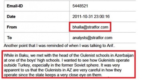 Redaksiyamız “Stratfor” əməkdaşlarından birinin Elnur Aslanovun Azərbaycandakı fətullahçılarla birbaşa əlaqəsini sübut edən elektron məktubu əldə edib.