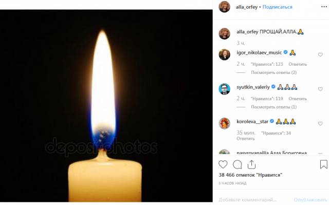 “Qafqazinfo”nun məlumatına görə, Moskva Mərkəzi Univermağının fəşn-direktoru Alla Verberin vəfatı ilə bağlı qara fonda yanan şam şəkli paylaşan Xalq artisti ona “Əlvida, Alla” şərhini yazıb.