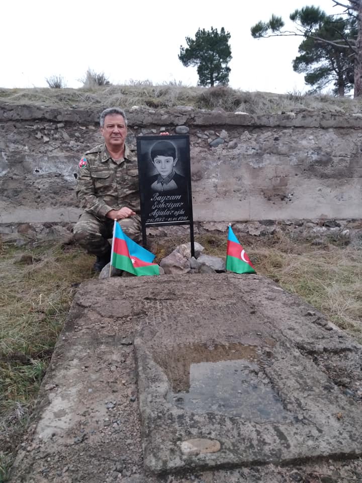 “Qafqazinfo” xəbər verir ki, aktyor Qubadlının Xocahan kəndində dəfn olunan oğlu Şəhriyarın məzarı başında ağı deyib.