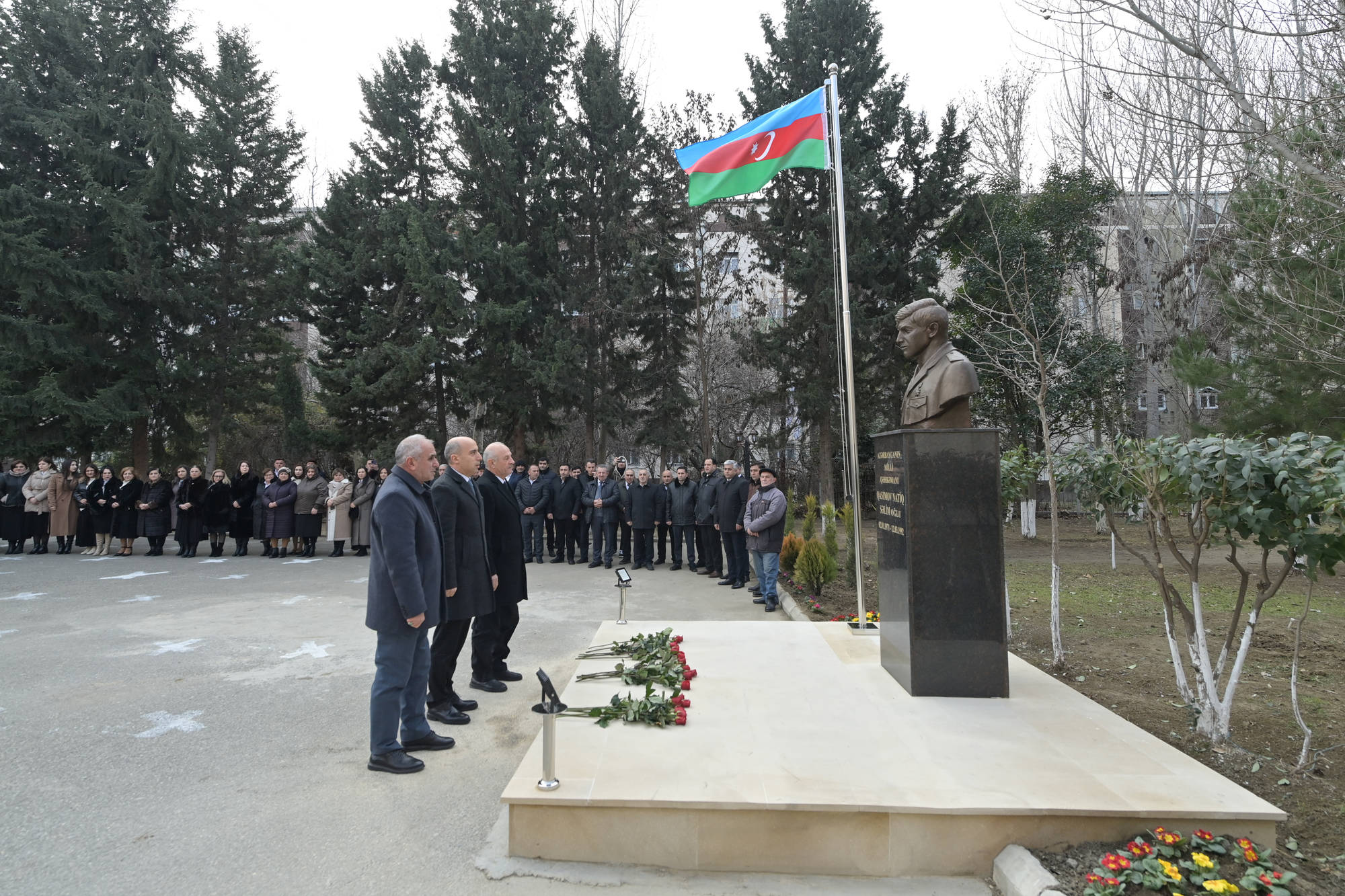Əvvəlcə ulu öndər Heydər Əliyevin abidəsi ziyarət edilib, önünə gül dəstələri düzülüb.