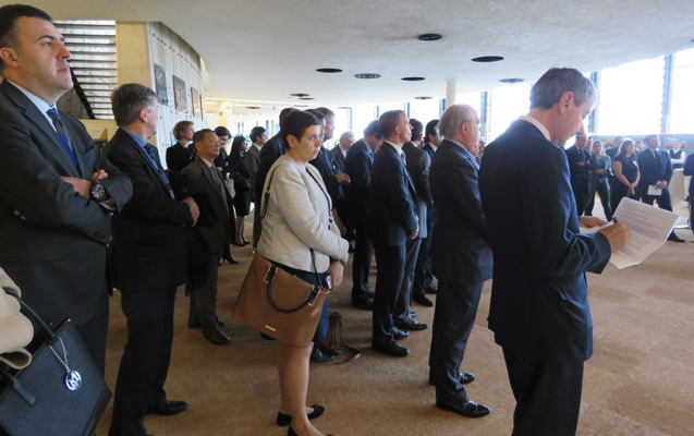 Tədbirdə Almaniyanın BMT-dəki Daimi Nümayəndə Heyətinin İqtisadi Münasibətlər Bölməsinin rəhbəsi Dr. Uve Petri, Azərbaycan Respublikasının BMT-dəki Daimi Nümayəndə Heyətinin rəhbəri Səfir Vaqif Sadıqov, Avropa Azərbaycan Cəmiyyətinin direktoru Lionel Zetter, “KazEnergy” Assosiasiyasının icraçı direktoru Ramazan Zampiissov və ukraynalı deputat Valeriy Pisarenko çıxış ediblər.