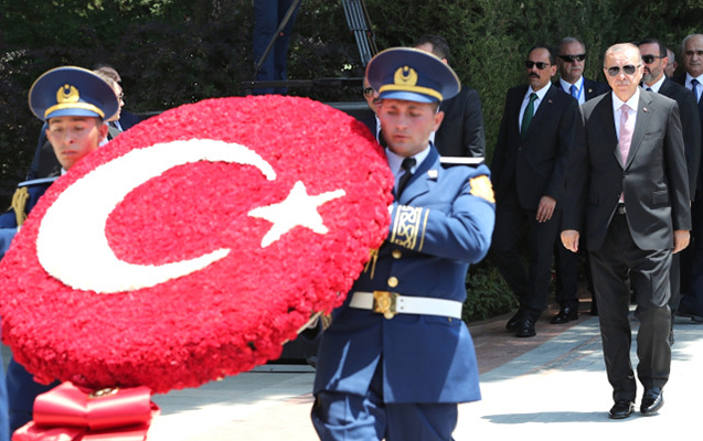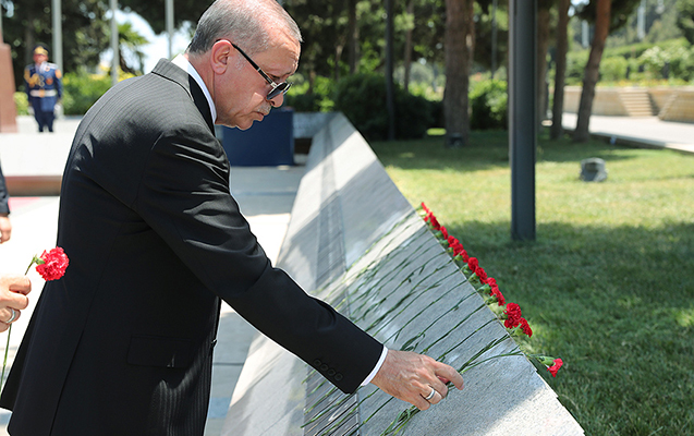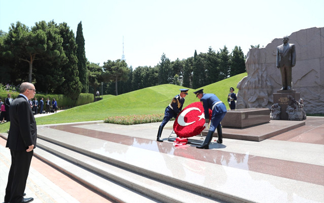 Rəcəb Tayyib Ərdoğan Fəxri xiyabana gələrək Heydər Əliyevin xatirəsini ehtiramla yad edib, məzarı önünə əklil qoyub.