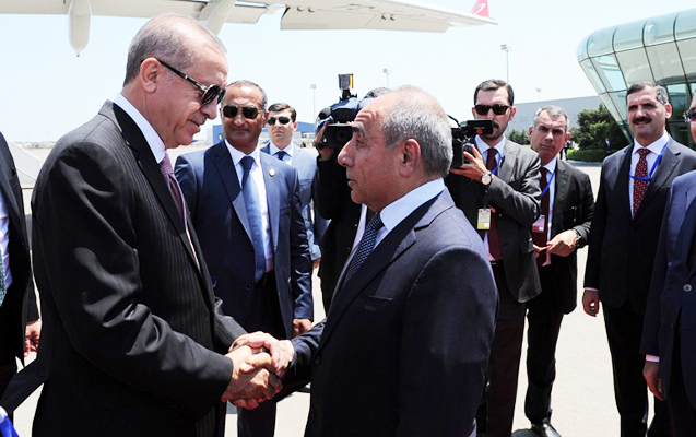 Azərbaycan prezidenti İlham Əliyev Türkiyə Prezidenti Rəcəb Tayyib Ərdoğanı qarşılayıb.