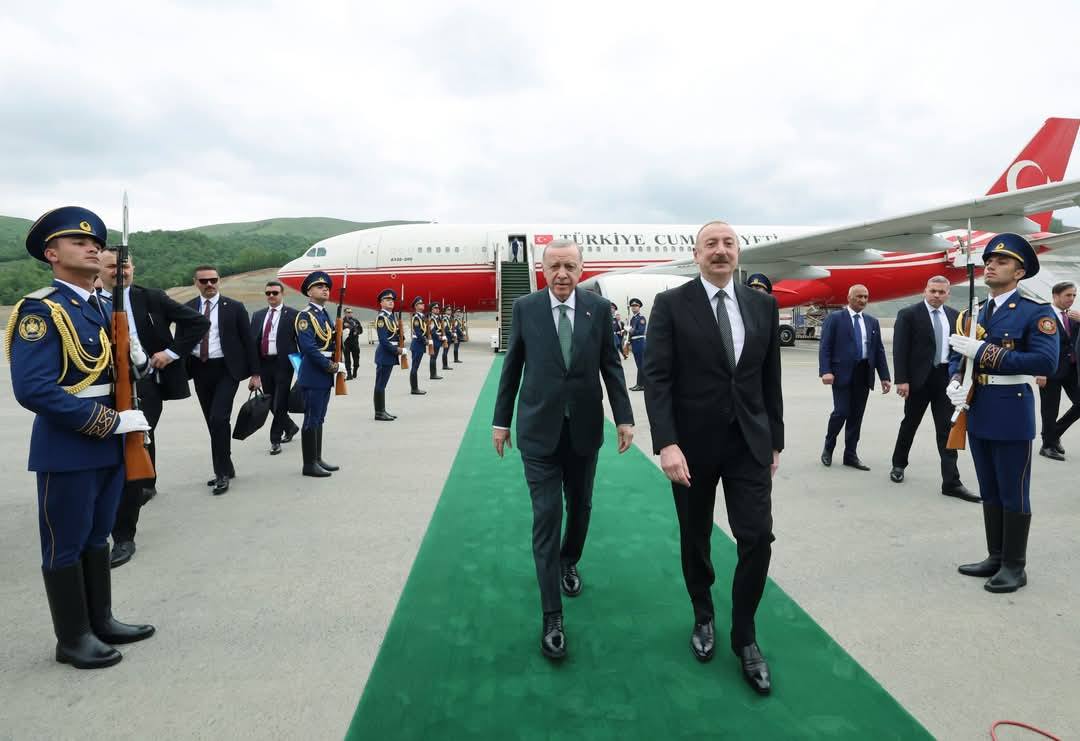 Ərdoğanı Laçın hava limanında Prezident İlham Əliyev qarşılayıb.