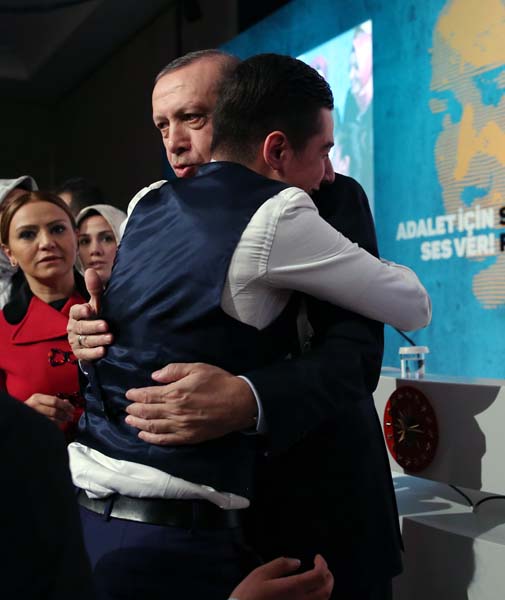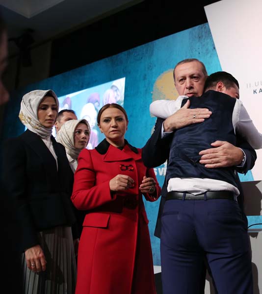 “Qafqazinfo” “Milliyet”ə istinadən xəbər verir ki, Ərdoğan tədbirdə çıxış edəndən sonra bir gənc oğlan onunla şəkil çəkdirmək üçün qaçaraq səhnəyə çıxıb və prezidenti qucaqlayıb. İlk öncə çox təəccüblənən Ərdoğan daha sonra oğlanı qucaqlayaraq mühafizəçisinə əliylə uzaqlaşmağını bildirib.