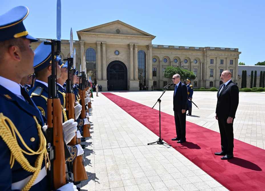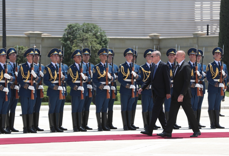 Fəxri qarovul dəstəsi hərbi marşın sədaları altında Azərbaycan Prezidenti İlham Əliyevin və Türkiyə Prezidenti Rəcəb Tayyib Ərdoğanın qarşısından keçib.