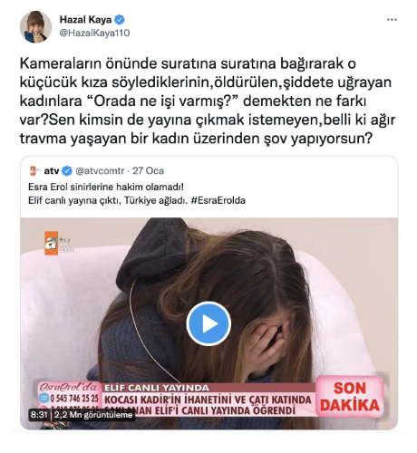 Buna görə də Esra Erol tənqid atəşinə tutulub. Həm sıravi vətəndaşlar, həm də tanınmış simalar sosial şəbəkə hesablarında aparıcının bu hərəkətini şiddətlə qınayıblar.