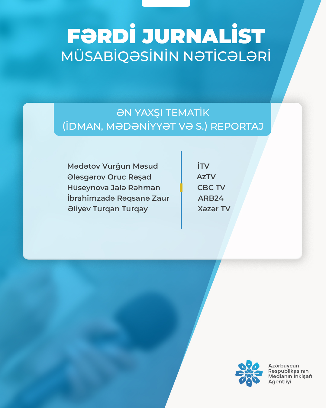 Oktyabrın 30-da elan olunmuş “Fərdi jurnalist müsabiqəsi”nin nəticələri açıqlanıb.