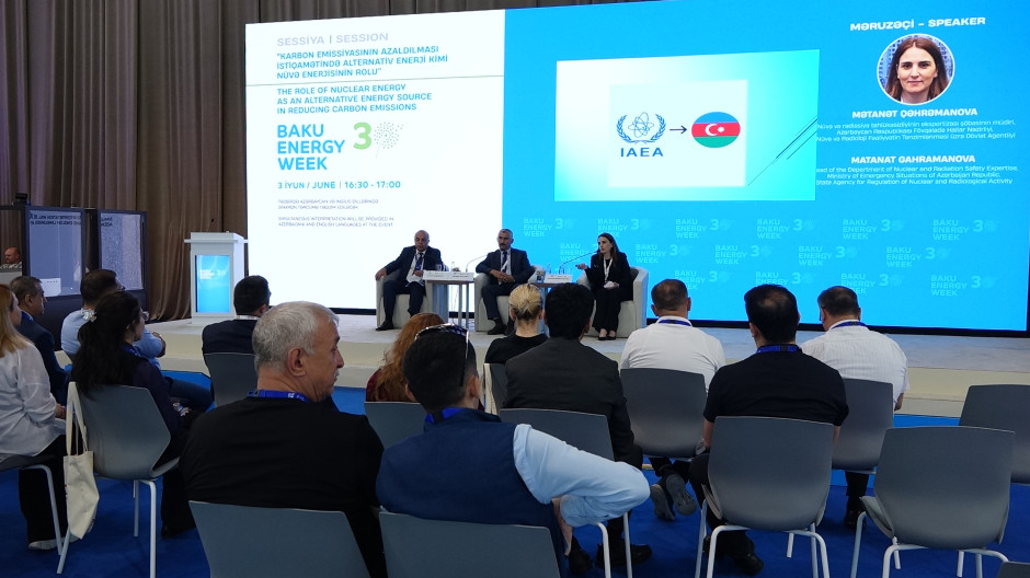 “Qafqazinfo” xəbər verir ki, sessiyada iştirak edən FHN-in Nüvə və Radioloji Fəaliyyətin Tənzimlənməsi üzrə Dövlət Agentliyinin rəis müavini Əkbər Quliyev, Nüvə və radioloji fəaliyyətə nəzarət şöbəsinin müdiri İlham Sadıqov və Nüvə və radiasiya təhlükəsizliyinin ekspertizası şöbəsinin müdiri Mətanət Qəhrəmanova “Karbon emissiyasının azaldılması istiqamətində nüvə enerjisinin rolu” və “Atom elektrik stansiyalarının istismarının ətraf mühitə təsiri” mövzularında təqdimatla çıxış ediblər.