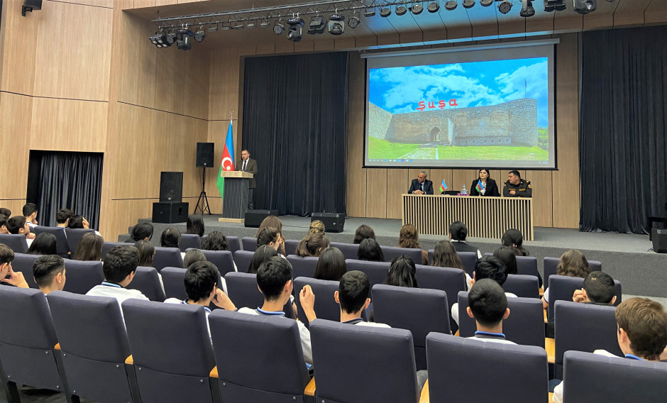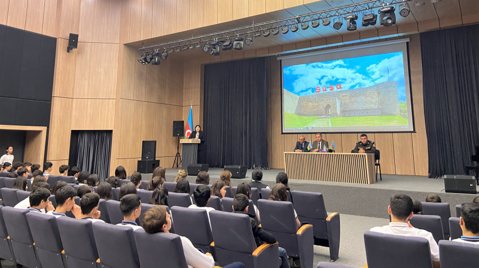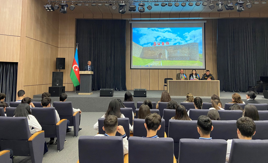 Fövqəladə Hallar Nazirliyinin Qarabağ Regional Mərkəzi tərəfindən Şuşa şəhər 1 nömrəli tam orta məktəbində “Konstitusiya və Suverenlik İli”nə həsr olunan “Heydər Əliyev və milli dövlətçilik təfəkkürü” mövzusunda tədbir keçirilib.