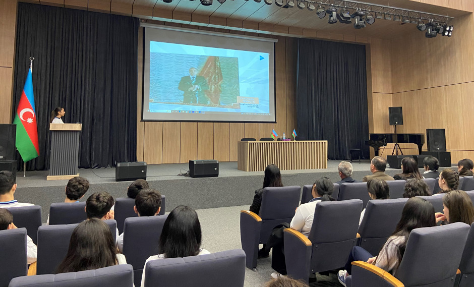 Dövlət Himninin səsləndirilməsi ilə başlanan tədbirdə, əvvəlcə Ümummilli Lider Heydər Əliyevin və ölkəmizin müstəqilliyi, ərazi bütövlüyü və suverenliyi uğrunda canlarından keçmiş şəhidlərimizin əziz xatirəsi bir dəqiqəlik sükutla yad olunub.