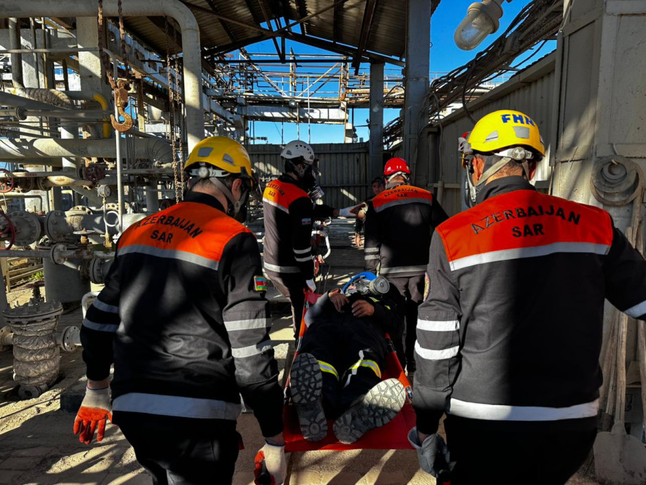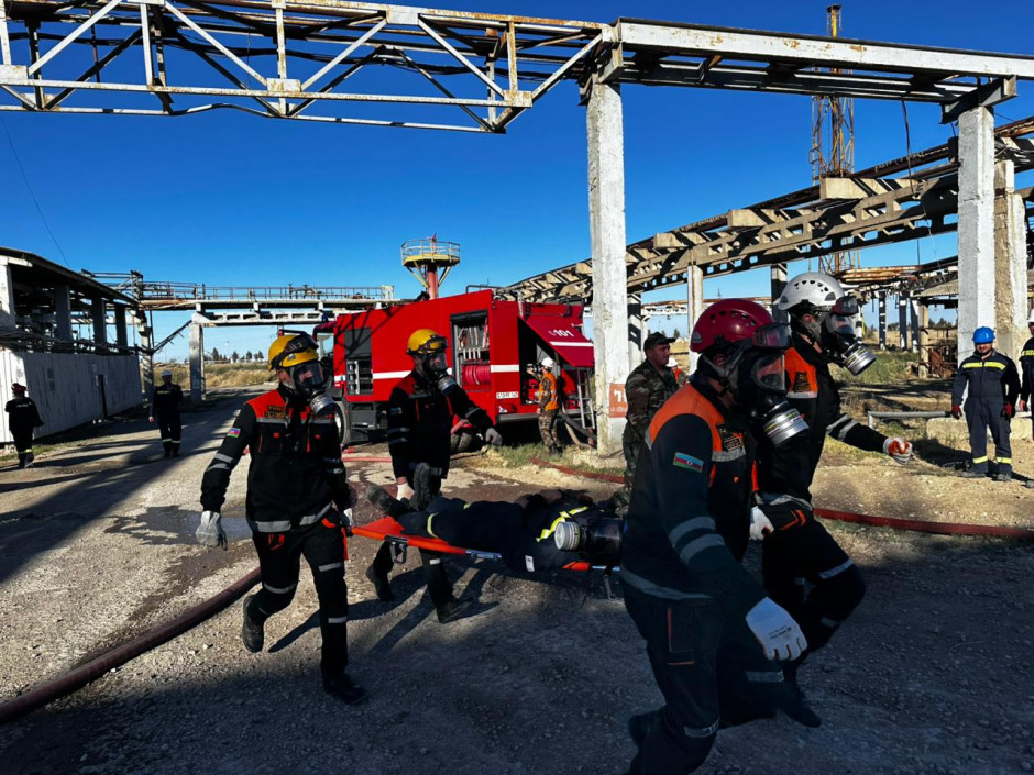 Təlim zamanı zavodda baş vermiş şərti yanğın yerinə operativ çatan Dövlət Yanğından Mühafizə Xidmətinin yanğından mühafizə bölmələri işçilərin “təhlükəli ərazidən” təxliyə edilməsi, “yanğın” yerində çevik kəşfiyyatın aparılması və “yanğının söndürülməsi”, FHN-in Sumqayıt Regional Mərkəzinin xilasetmə qrupları isə “zərərçəkmişlərin xilas edilməsi” əməliyyatlarını yerinə yetiriblər.