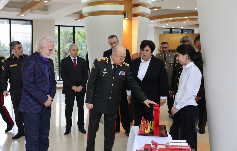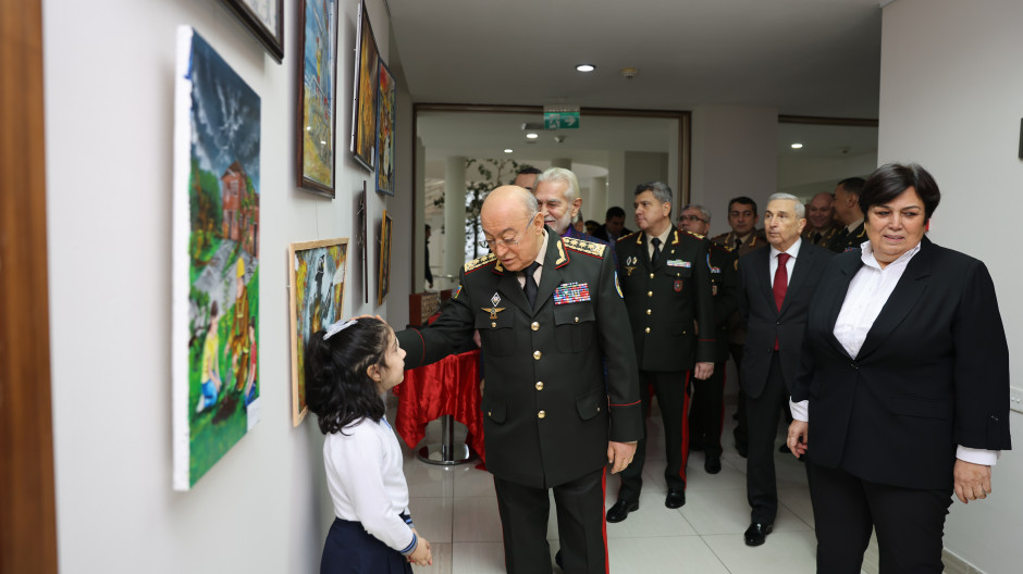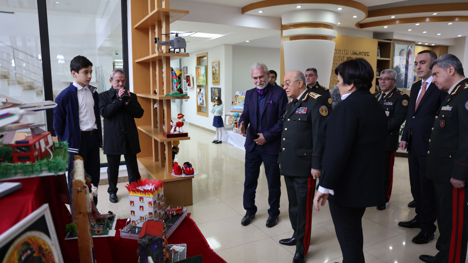 Sonra “Fövqəladə hallar uşaqların gözü ilə” XIII Respublika uşaq yaradıcılıq müsabiqəsinin seçilmiş işlərindən ibarət sərgiyə baxış keçirilib.