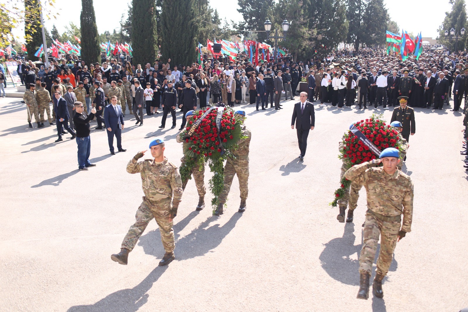 Gəncənin Şəhidlər xiyabanında gerçəkləşən tədbirdə əvvəlcə rəsmilər Azərbaycanın ərazi bütövlüyü uğrunda gedən döyüşlərdə itkin düşmüş hərbçilərin adları əks olunan abidəni ziyarət edib, önünə gül dəstələri düzüblər. Daha sonra Gəncə Şəhər İcra Hakimiyyətinin başçısı Niyazi Bayramov və general-mayor Vasif Kazımov “Əbədi məşəl” abidəsi önünə əklil qoyublar. Hərbi orkestrin ifasında Dövlət Himni səsləndirilib.