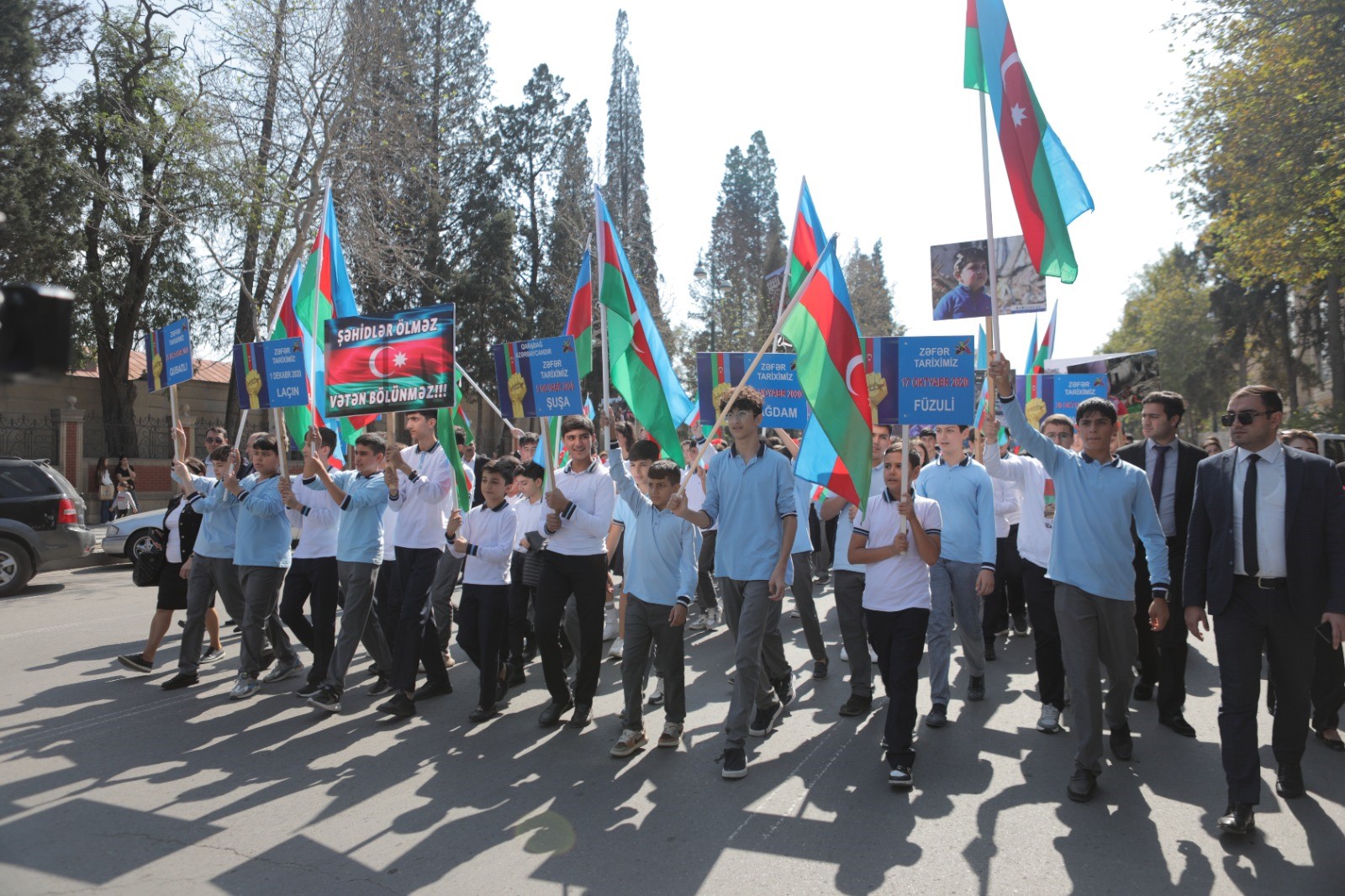 Bununla yanaşı, Gəncə-Daşkəsən Regional Təhsil İdarəsinin tabeliyində fəaliyyət göstərən Gəncə şəhər ümumtəhsil müəssisələrində təhsil alan şagirdlərin iştirakı ilə “Məktəbdən qələbəyə” adlı yürüş təşkil olunub.