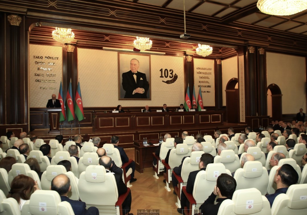 Hesabat yığıncağında Ümummilli Lider Heydər Əliyevin və şəhidlərimizin əziz xatirəsi bir dəqiqəlik sükutla yad edilib, ardınca Azərbaycan Respublikasının Dövlət Himni səsləndirilib.