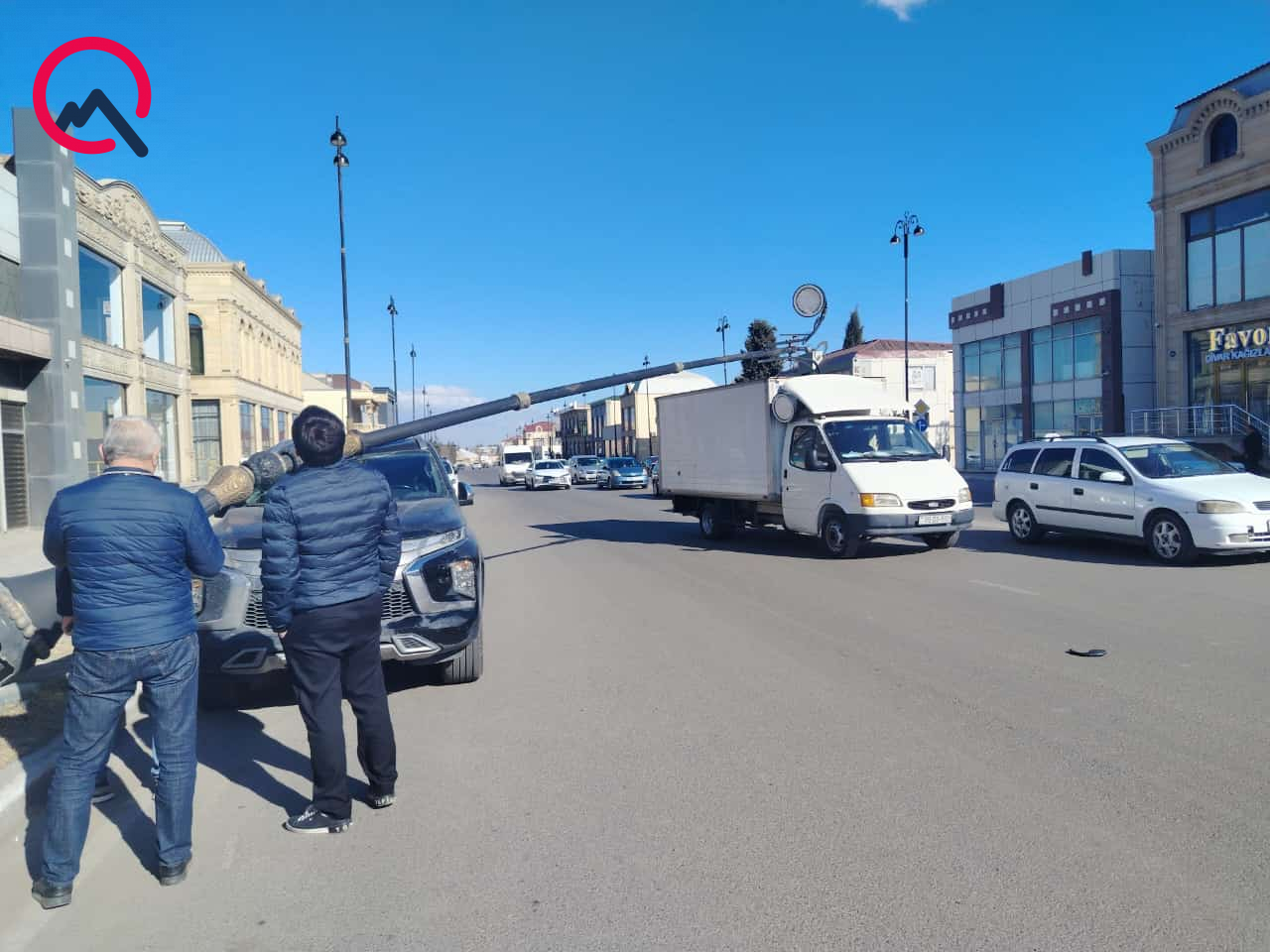 İşıq dirəyi hərəkətdə olan “Ford” markalı yük avtomobilinin üzərinə aşıb. Bu zaman yol kənarında dayanan və içərisi boş olan “Mitsubishi” markalı minik maşını da ziyan görüb.