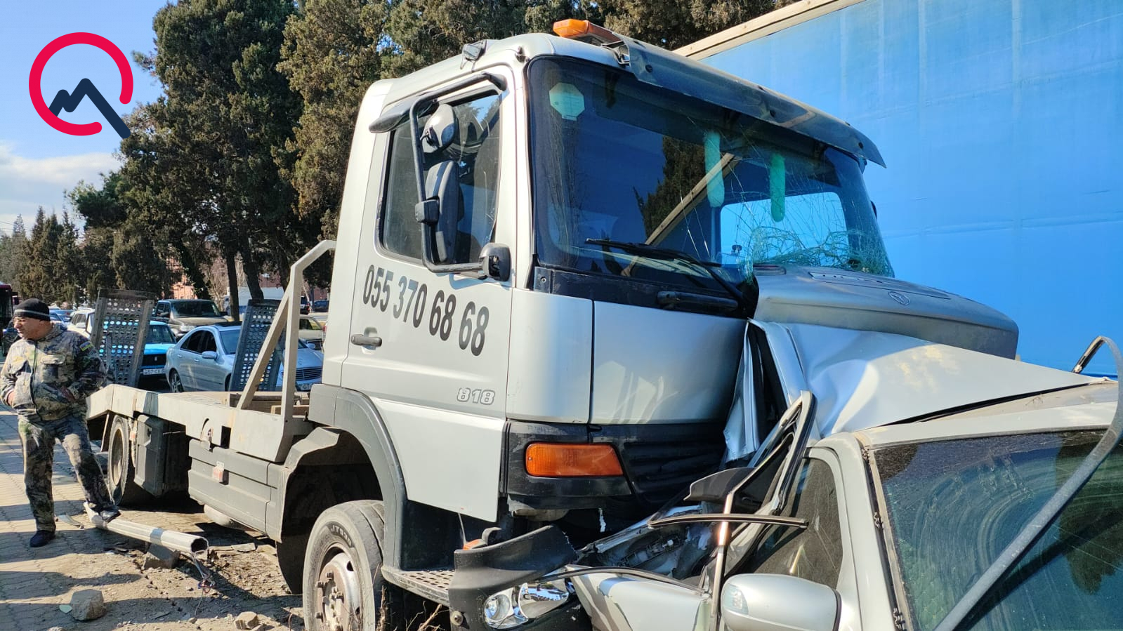 Evakuator tipli avtomobil iki “Mercedes” markalı avtomobilə çırpılıb.
