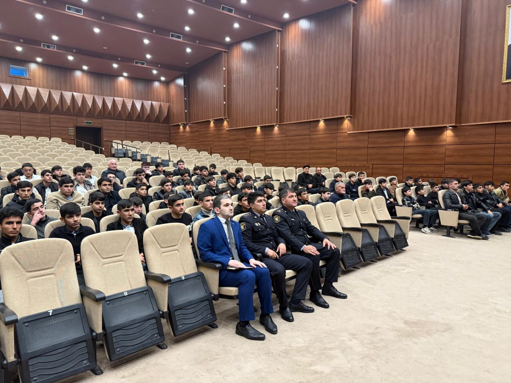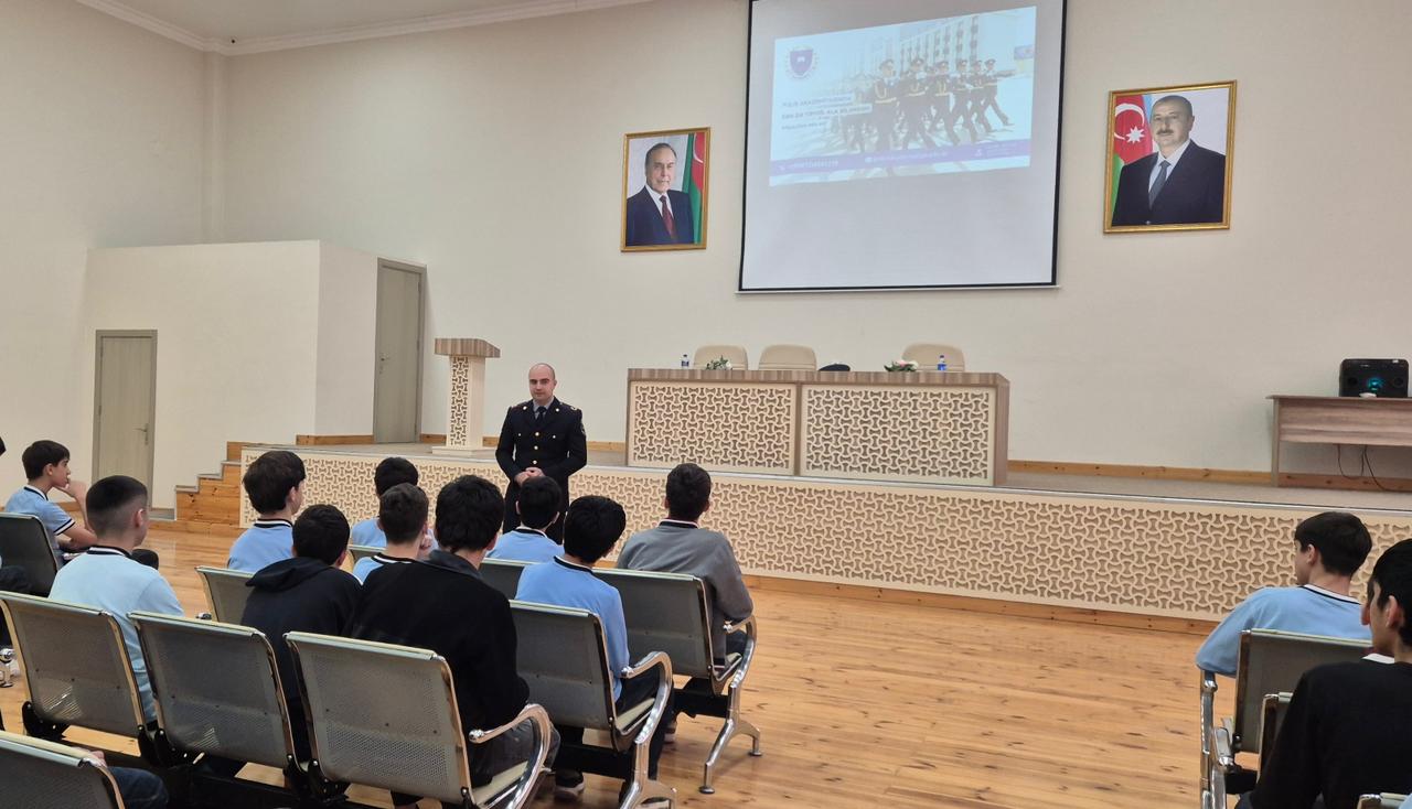 “Qafqazinfo” xəbər verir ki, əməkdaşlar Bakı şəhərində və ölkəmizin Qəbələ, Quba, Cəlilabad, Sabirabad, Göygöl, Saatlı, Qobustan və digər rayonlarında yerləşən ümumtəhsil müəssisələrində müəllim və IX–XI sinif şagirdləri ilə maarifləndirici görüşlər keçirərək tədris korpusları, zəngin kitabxanalar, laboratoriyalar, yataqxanalar, idman və atıcılıq kompleksləri ilə təmin olunmuş müasir infrastruktur barədə ətraflı məlumat veriblər.
