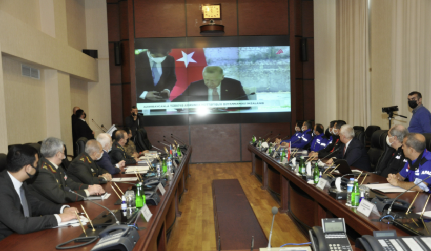 Nazir müavini Azərbaycan torpaqlarının işğaldan azad olunması yolunda Türkiyə Respublikasının Prezidenti cənab Rəcəb Tayyib Ərdoğanın və qardaş türk xalqının Azərbaycan dövlətinin və xalqının yanında olduğunu xatırladaraq bunu qardaşlığımızın bariz nümunəsi adlandırıb. E.Mirzəyev hər iki qardaş ölkə arasındakı münasibətlərin hər zaman yüksələn xətlə inkişaf etdiyini diqqətə çatdıraraq, bütün digər sahələrdə olduğu kimi fövqəladə halların idarə edilməsi istiqamətində də sıx əməkdaşlıq münasibətlərinin qurulduğunu diqqətə çatdırıb. Nazir müavini 2011-ci ildə Türkiyənin Van vilayətində baş vermiş zəlzələnin nəticələrinin aradan qaldırılması məqsədilə Azərbaycan Respublikasının Prezidenti cənab İlham Əliyevin tapşırığına uyğun olaraq qardaş ölkəyə köməyə yetişən ilk ölkənin Azərbaycan olduğunu xatırladıb. O, həmçinin bu ilin iyul-avqust aylarında Türkiyədə baş vermiş meşə yanğınlarının söndürülməsi məqsədilə qardaş ölkəyə göndərilmiş Fövqəladə Hallar Nazirliyinin yanğın-xilasetmə qüvvələrinin fəaliyyətinə də toxunub.