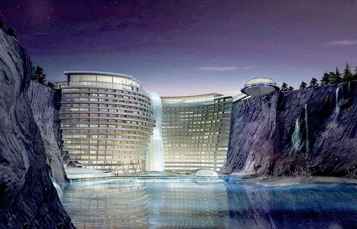 Otel Çində sıldırım qayalıqların içərisində inşa olunacaq. Bir hissəsi suyun altında, bir hissəsi isə yuxarıda olması planlaşdırılan otelin qarşısında təbii göl var. Bundan başqa, otelin tam mərkəzindən şəlalənin axması planlaşdırılıb.