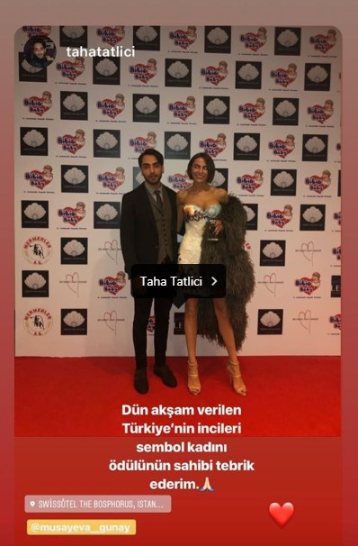 Onlar dünən İstanbulda keçirilən “Sembol kadını” mükafat mərasiminə qatılıblar. Taha mükafata layiq görülən Günayla şəklini paylaşaraq sevgilisini təbrik edib.