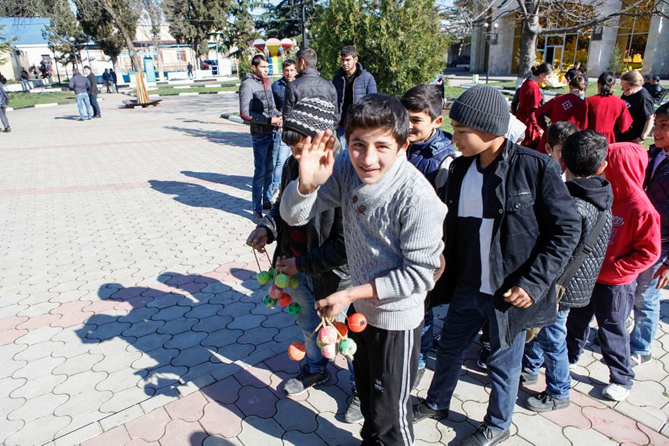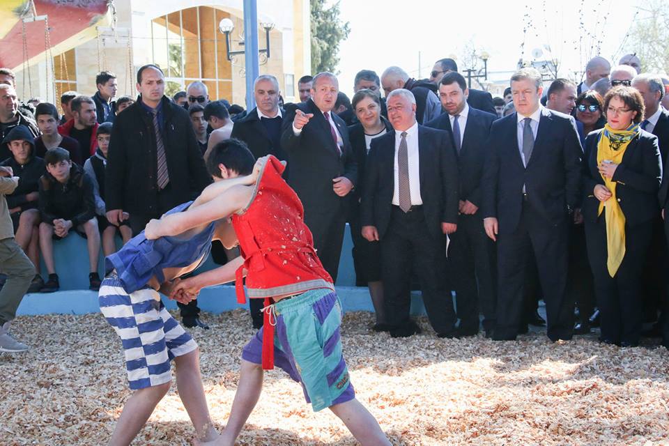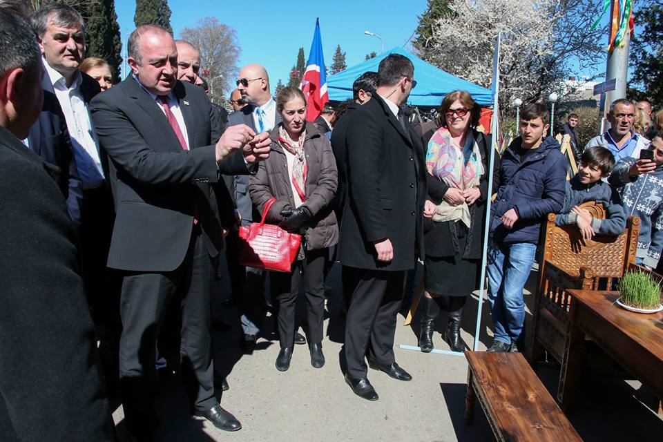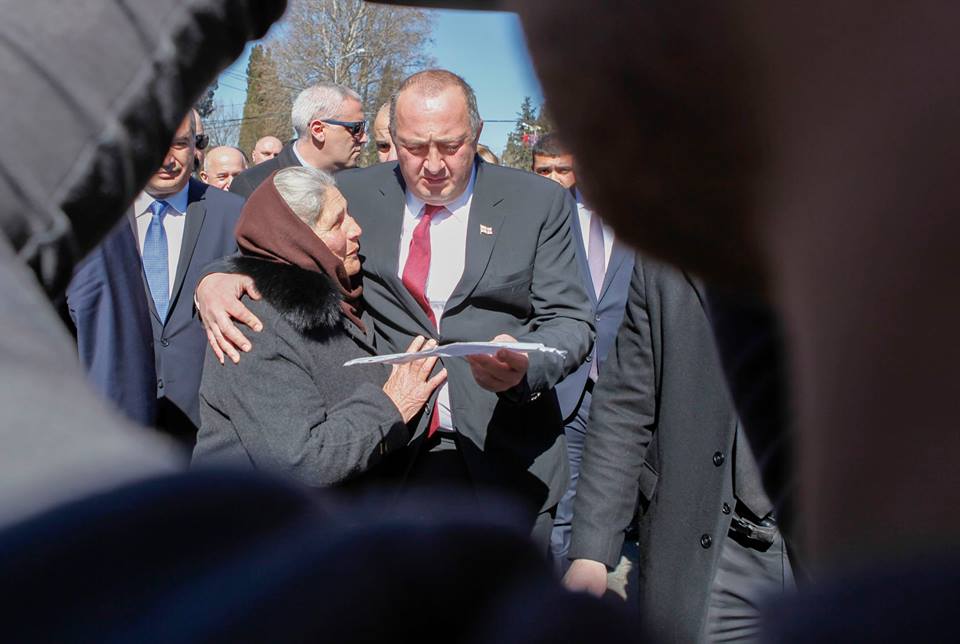 "Qafqazinfo" xəbər verir ki, sakinlərlə görüşən prezident onların şikayətlərini dinləyib, Novruz ənənələri ilə tanış olub və tonqal ətrafında yumurta döyüşdürüb. Görüşdən çəkilən fotolar Margvelaşvilinin rəsmi facebook səhifəsində yerləşdirilib.