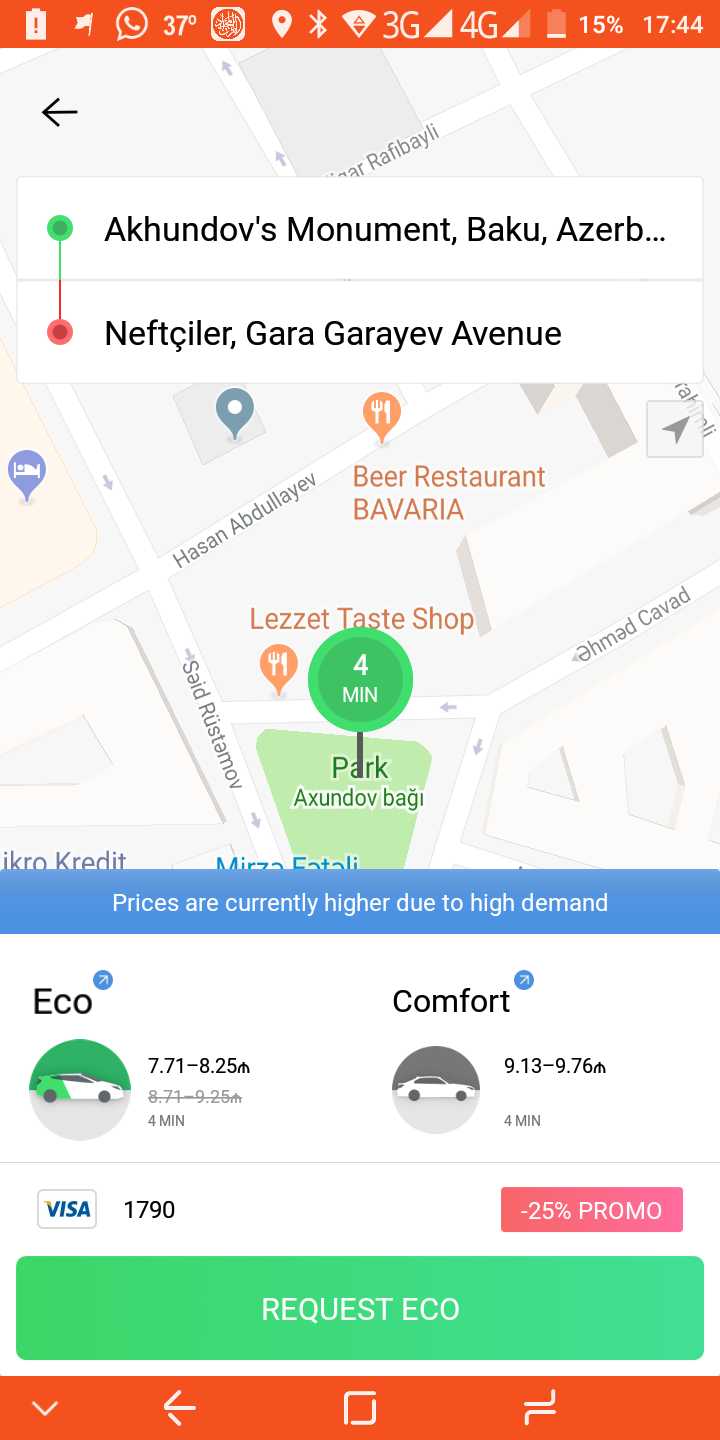 “Qafqazinfo” xəbər verir ki, yaranan tələbat və nəqliyyatın sıxlığı nəticəsində taksi xidməti göstərən şirkətlər məsafədən aslı olaraq müvafiq istiqamətlərdə qiymətlərini artırıblar.