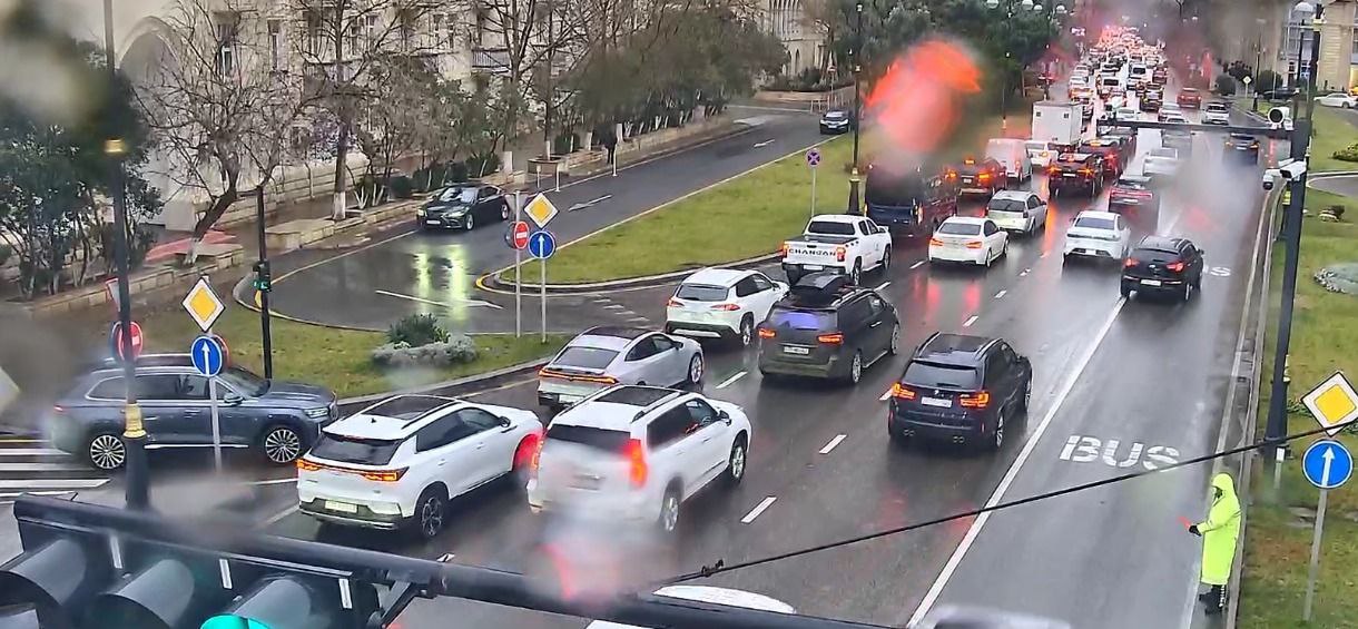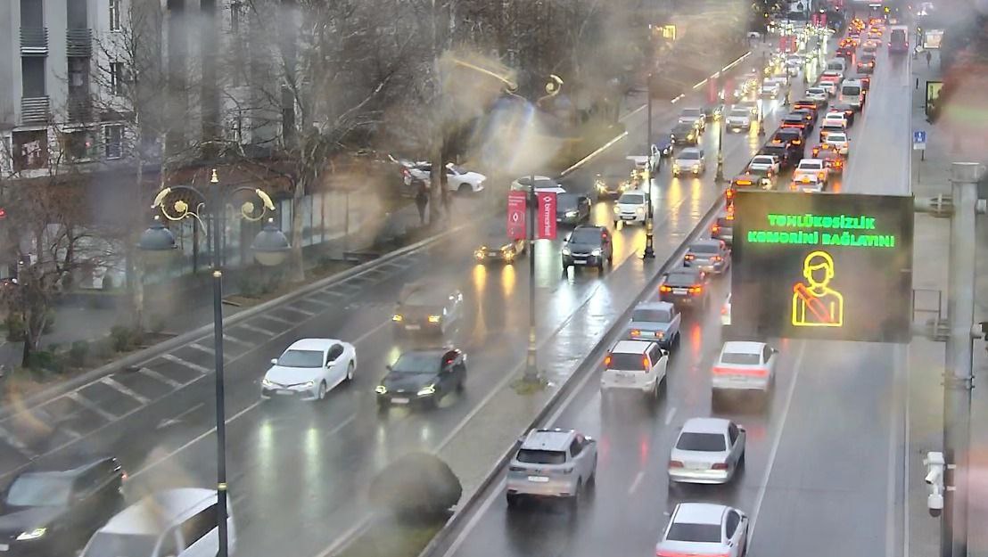 Bakının bir sıra yollarında nəqliyyatın sıxlığı müşahidə olunur.