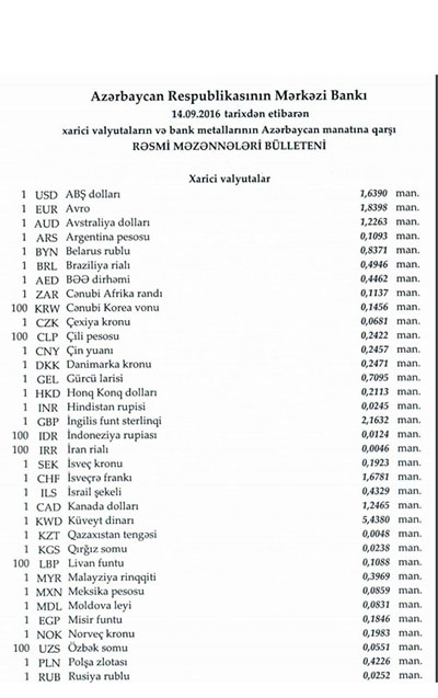 Qeyd edək ki, sentyabrın 9-u üçün 1 ABŞ dollarının rəsmi məzənnəsi 1,6403 manat olunub.