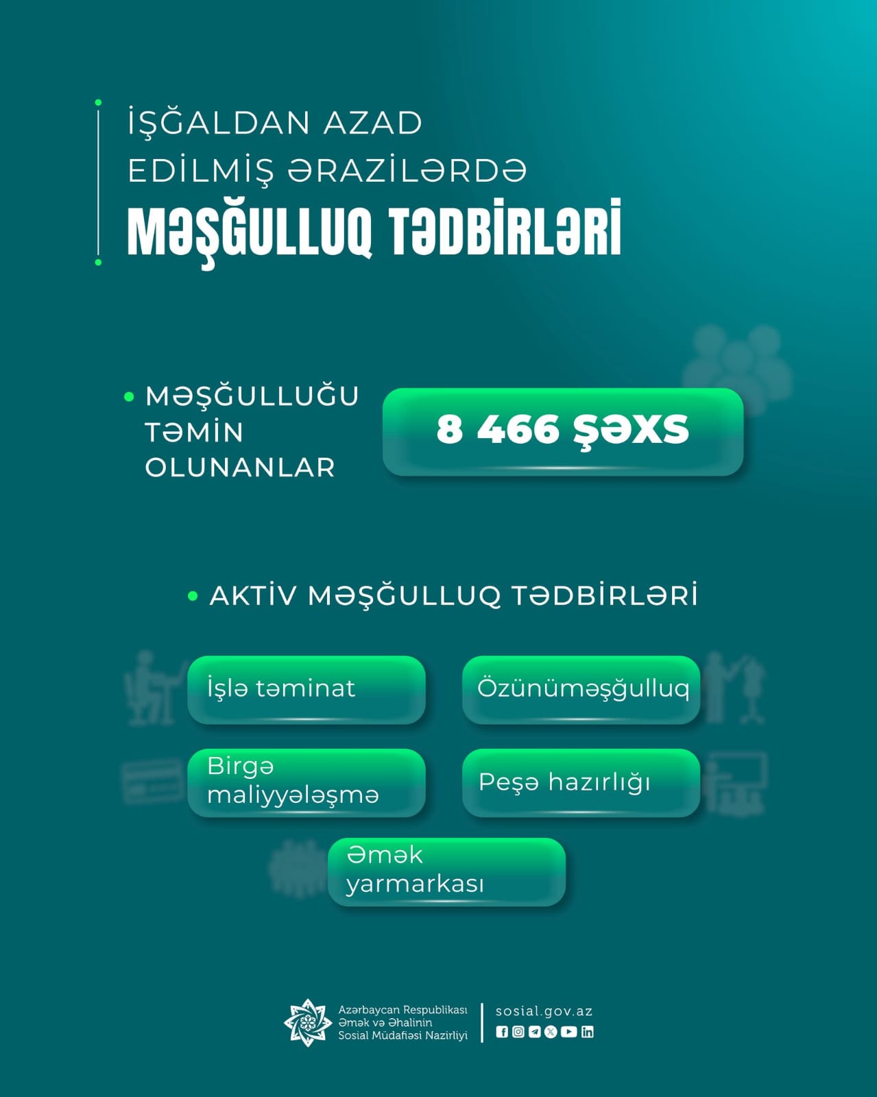 Əmək və Əhalinin Sosial Müdafiəsi Nazirliyinin tabeliyində Dövlət Məşğulluq Agentliyi işğaldan azad edilmiş ərazilərimizə köçürülmüş sakinlərin məşğulluq tədbirləri ilə əhatə olunması işlərini davam etdirir.
