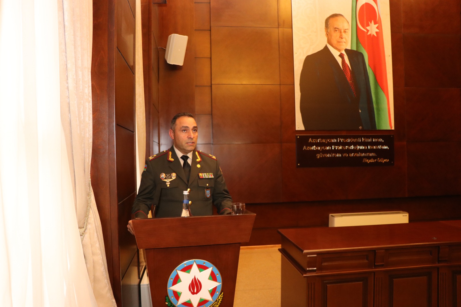 Baş prokurorun müavini - Hərbi prokuror Bəhruz Əhmədov çıxış edərək dövlət müstəqilliyimizin banisi, müasir Azərbaycan dövlətinin qurucusu, xalqımızın Ümummilli lideri Heydər Əliyevin öz siyasi dühası ilə xalqımızın taleyində silinməz izlər qoymasından, onun Azərbaycana rəhbərlik illərində həyatın bütün sahələrinin intibah dövrünü yaşamasından danışıb.
