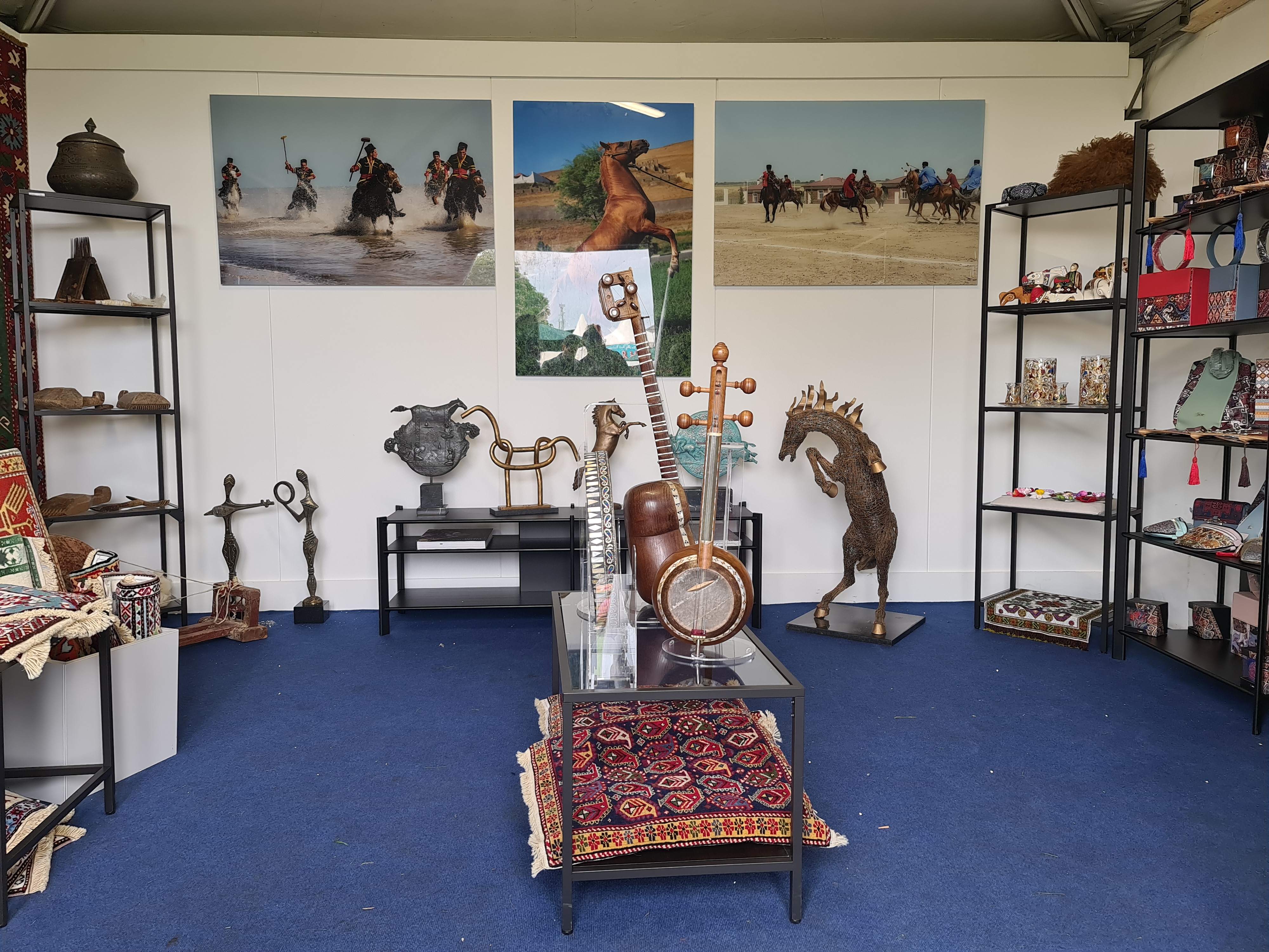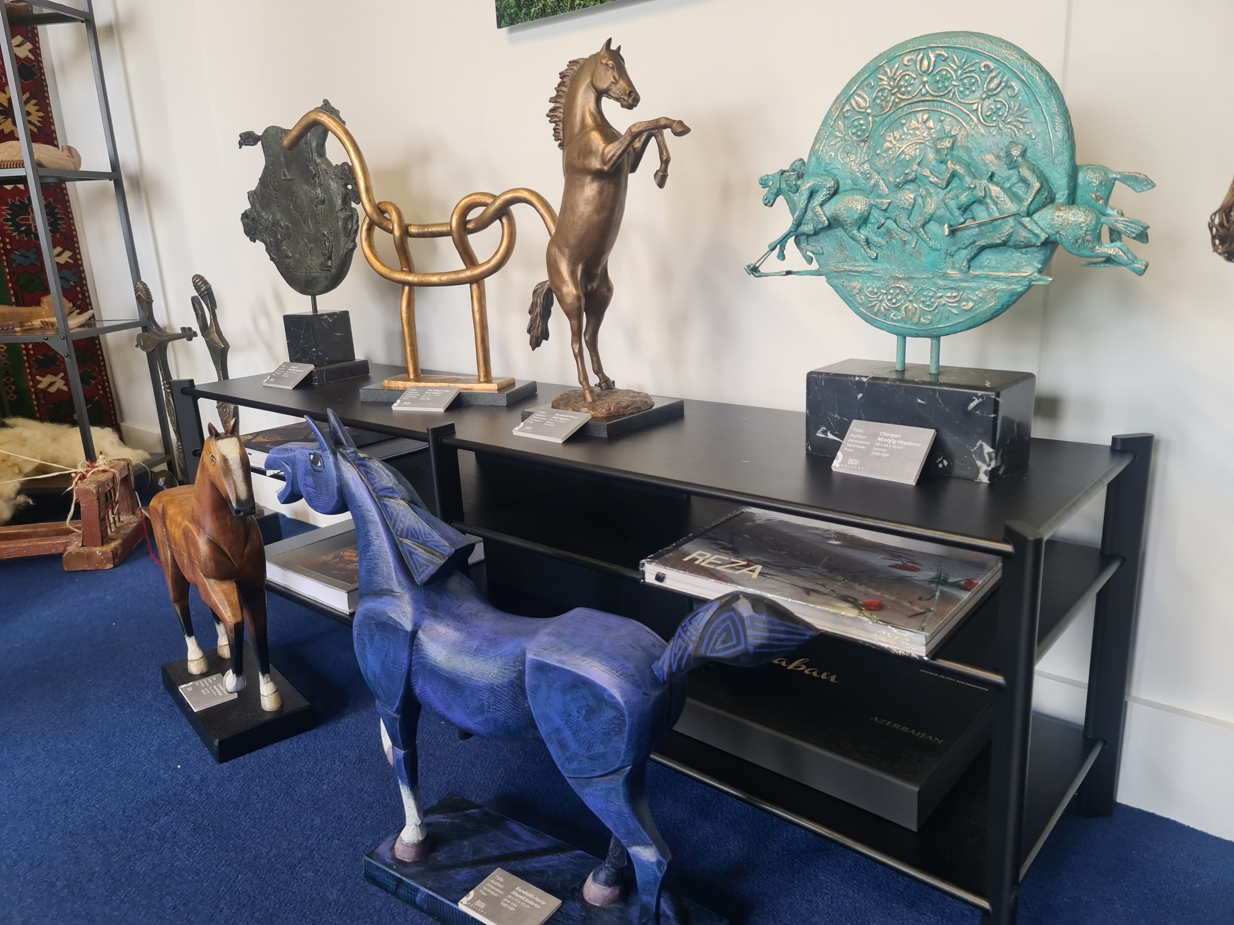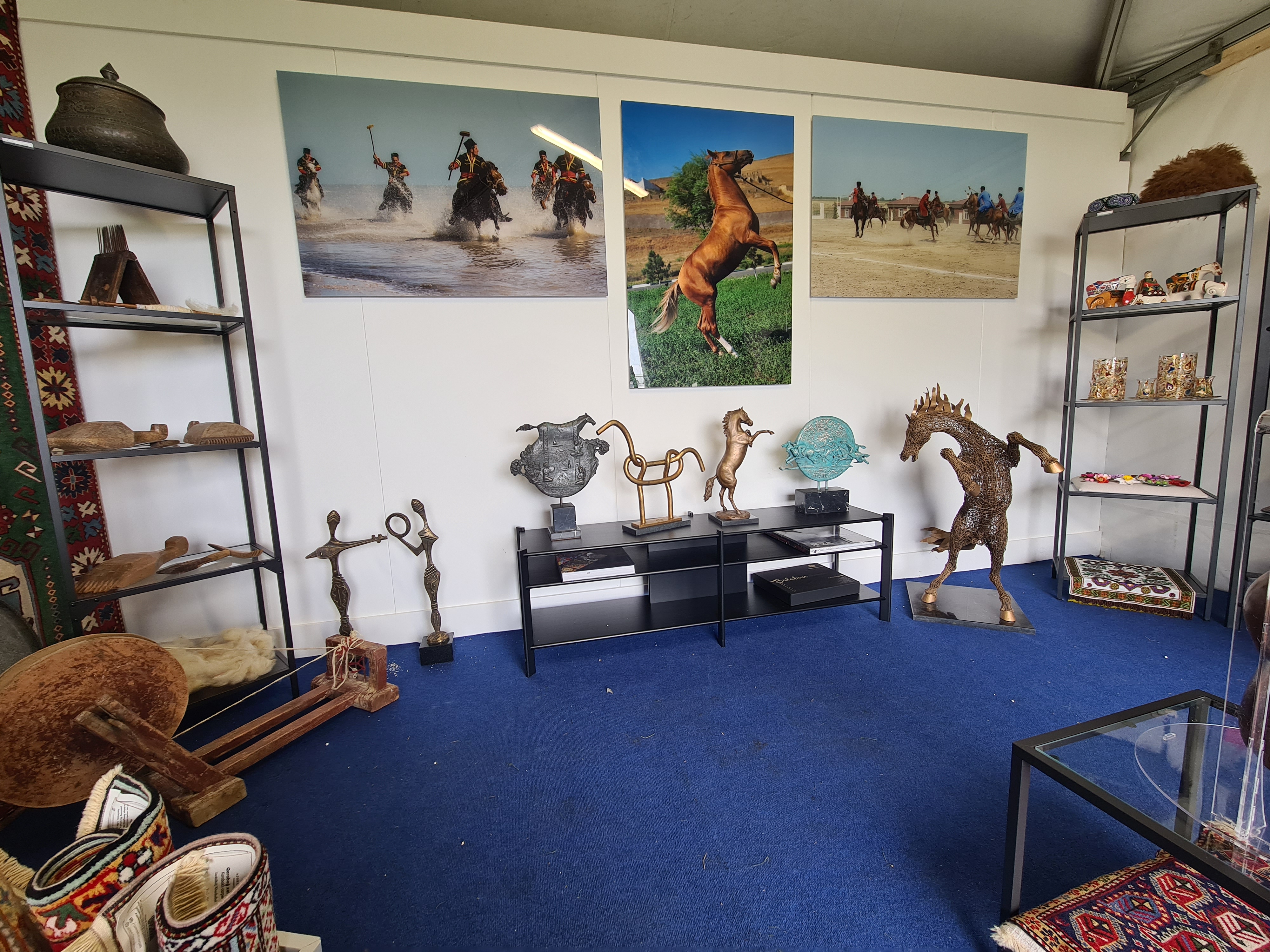 Pavilyonda mərkəzi yeri alan Qarabağ atının təsvirləri və tarixi çövkən yarışlarından fotosərgi, müəllifi Müşfiq Heydərovun olduğu “Çələbi” heykəltaraşlıq nümunəsi maraqla qarşılanıb. Azərbaycan musiqisinin mirvarisi olan muğam triosunu təqdim edən musiqi alətləri, tarixi mis və saxsı qablar, milli geyimlər, xalçaçılıq numunələri ziyarətçilərin diqqət mərkəzində olub. Pavilyonda Heydər Əliyev Fondunun müxtəlif nəşrləri də təqdim edilib.