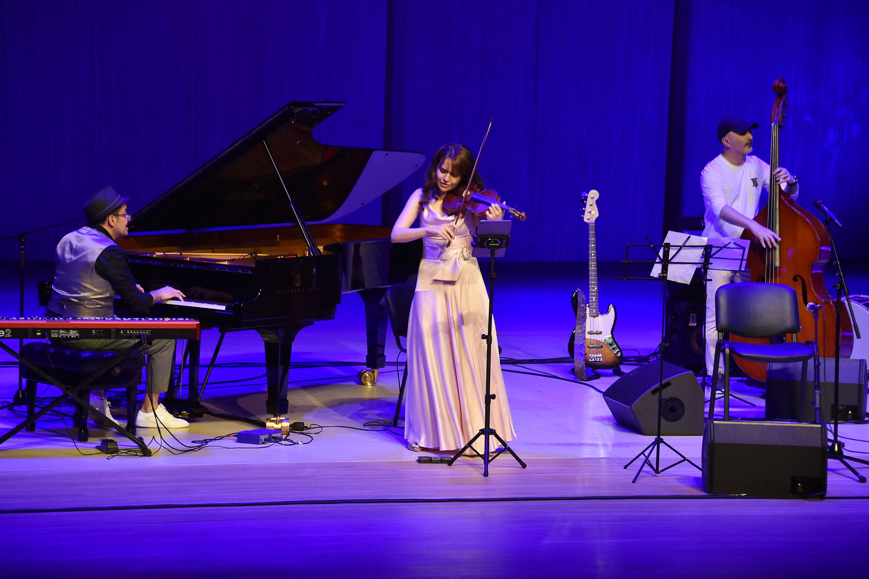 “Qafqazinfo” xəbər verir ki, Heydər Əliyev Mərkəzinin Auditorium zalının səhnəsində əvvəlcə trio - tanınmış pianoçu və bəstəkar, beynəlxalq müsabiqələr laureatı Ruslan Ağababayev (piano), Ruslan Hüseynov (bas gitara) və Elvin Bəşirov (zərb aləti) çıxıb.