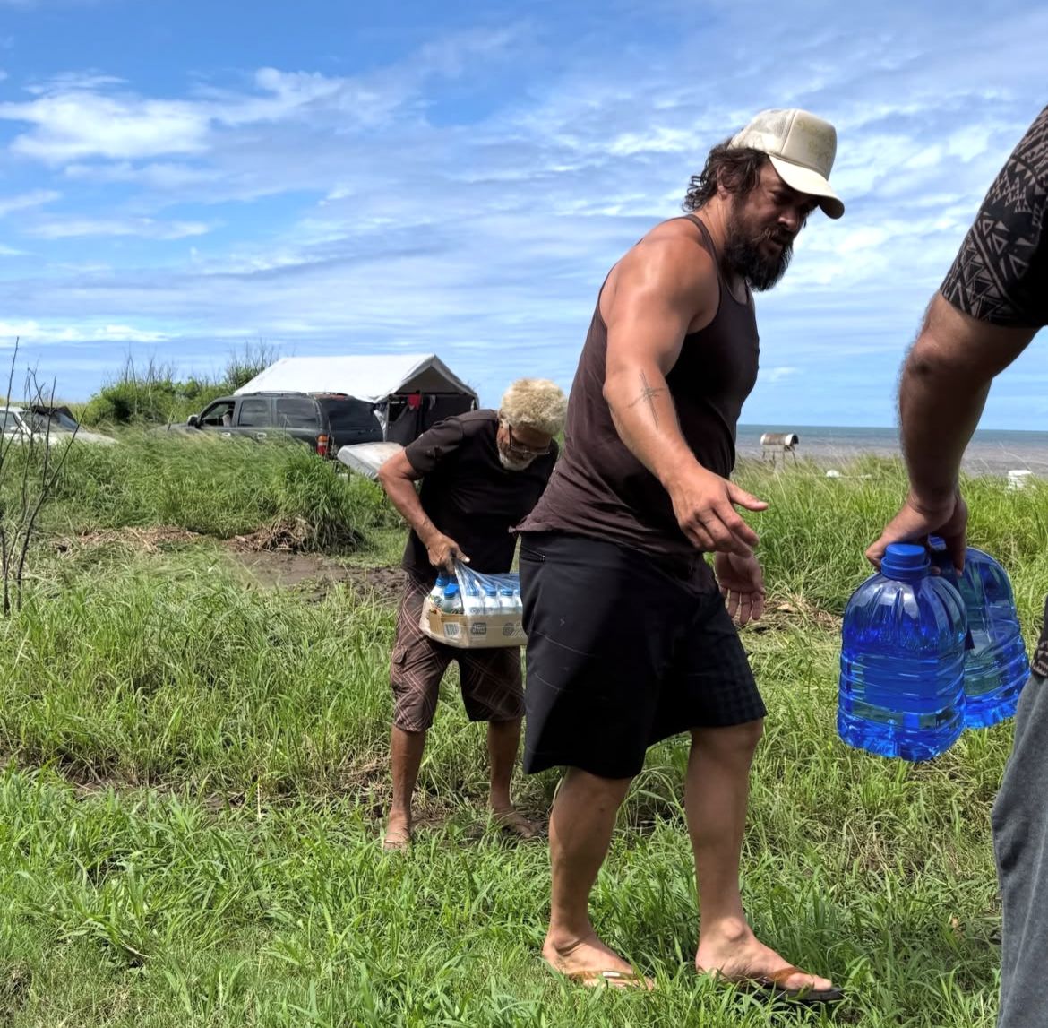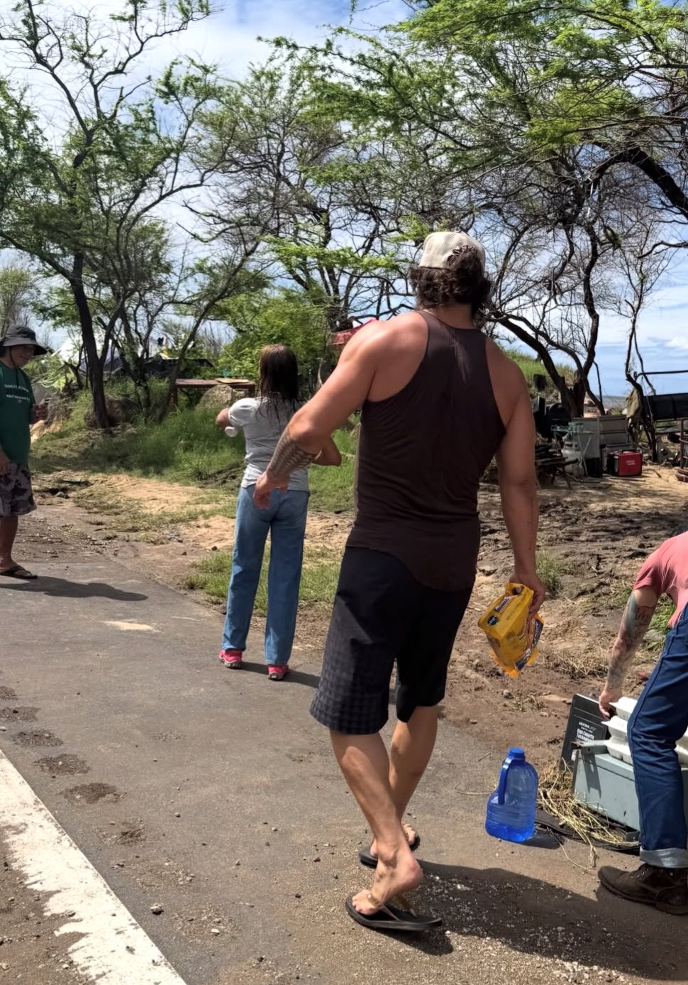 O bildirib ki, cümə günü elektrik enerjisi kəsilib, həmçinin Vahiava bəndinin yarılması təhlükəsi kütləvi təxliyəyə səbəb olub. Bu fəlakət səbəbindən Momoa sosial şəbəkədə çağırışlar edib. Belə ki, hollivud ulduzu yerli sakinlərə dəstək göstərib və insanları bir-birinə yardım etməyə çağırıb.