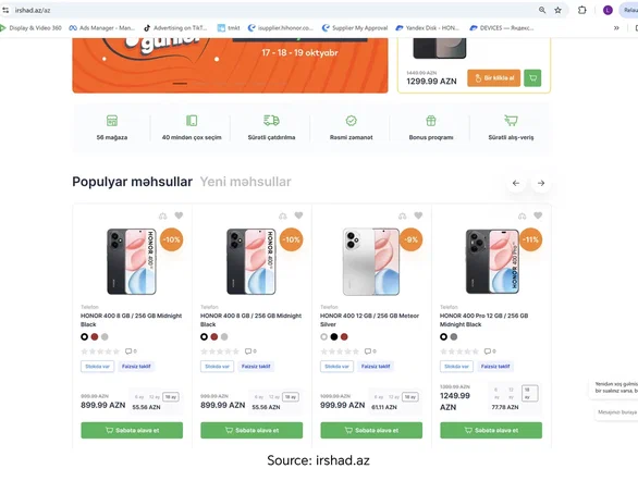 2025-ci ilin iyul ayında təqdim edilən “HONOR 400” seriyası qısa müddət ərzində həm Google Trends axtarışlarında, həm də satış kanallarında ən çox maraq doğuran və satılan modellərdən birinə çevrilib. Seriyanın populyarlığı onun zərif dizaynı, süni intellekt əsaslı kamera imkanları və yüksək performansı ilə izah olunur.