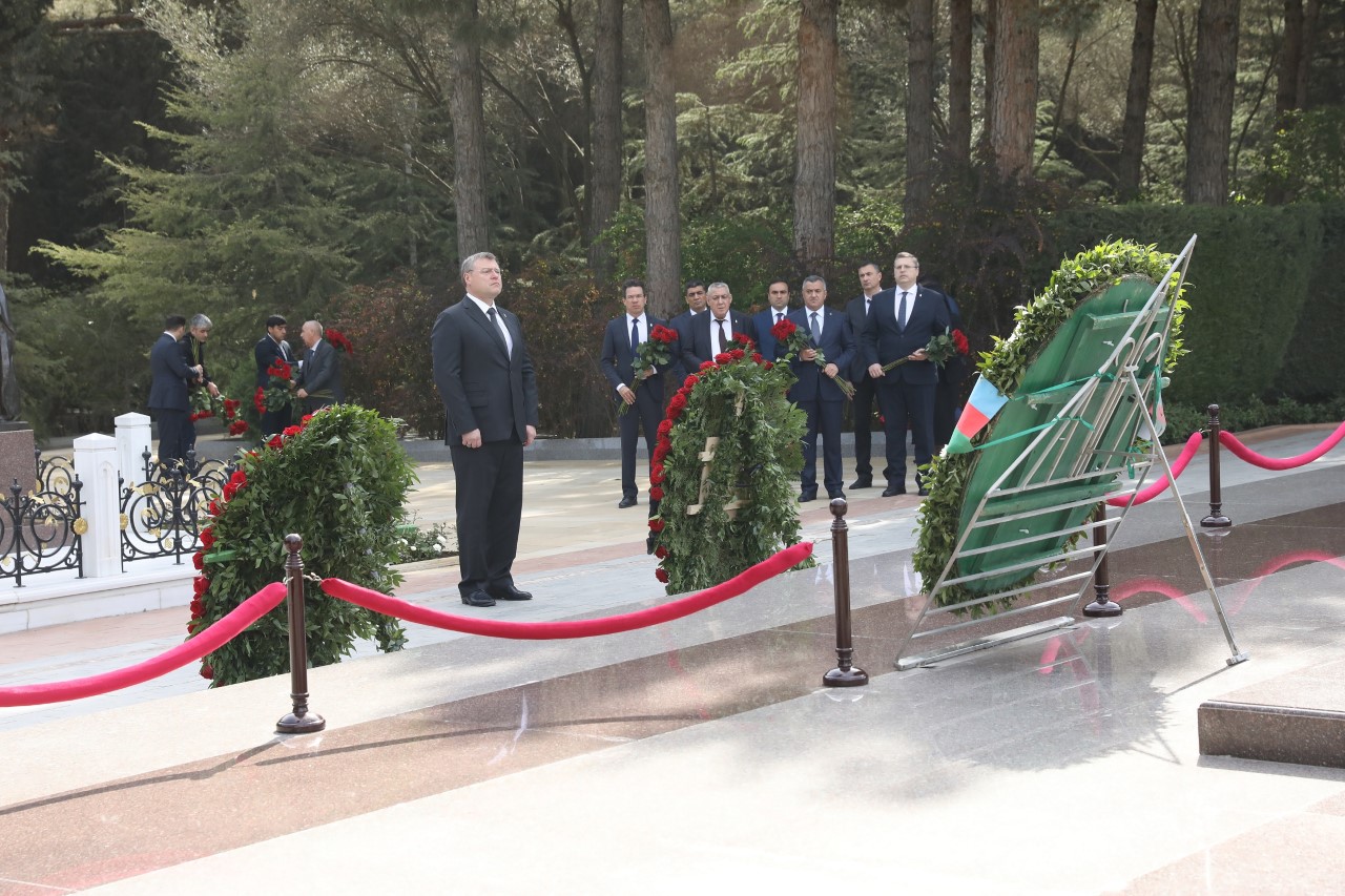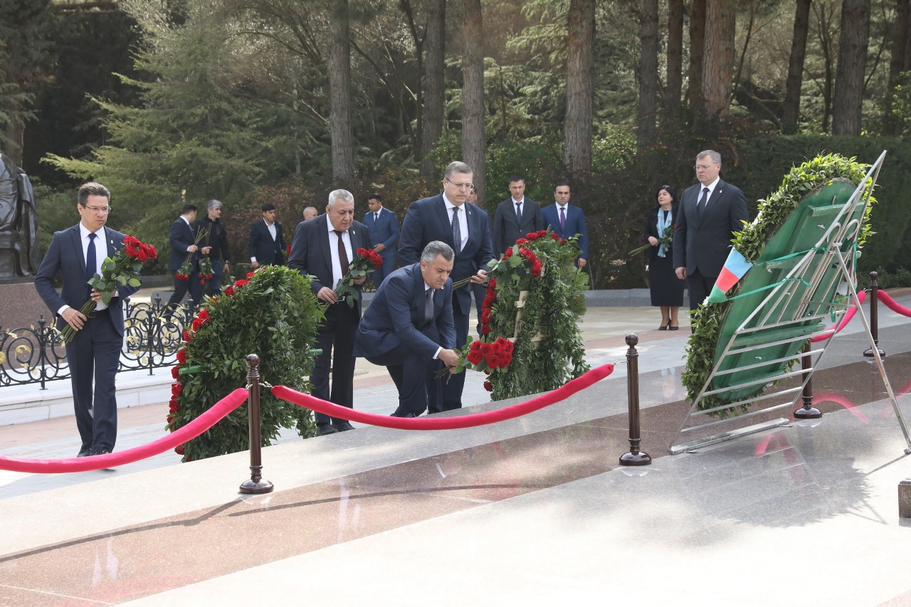 “Qafqazinfo” xəbər verir ki, görüşdən əvvəl Abşeron RİH başçısı Abdin Fərzəliyev, Rusiya Federasiyasının Həştərxan vilayətinin qubernatoru İqor Babuşkin və onun rəhbərlik etdiyi nümayəndə heyəti Fəxri Xiyabana gələrək xalqımızın ümummilli lideri, müasir müstəqil Azərbaycan dövlətinin memarı və qurucusu Heydər Əliyevin xatirəsini dərin ehtiramla yad edib, məzarı önünə güllər düzüblər.