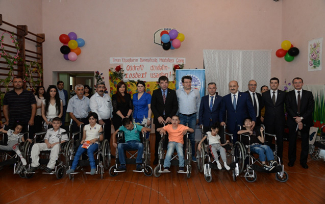 Tədbir zamanı hər iki məktəbdə təhsil alan fiziki qusurlu 9 nəfər uşağa TUSİAB tərəfindən əlil arabaları təqdim edilib.