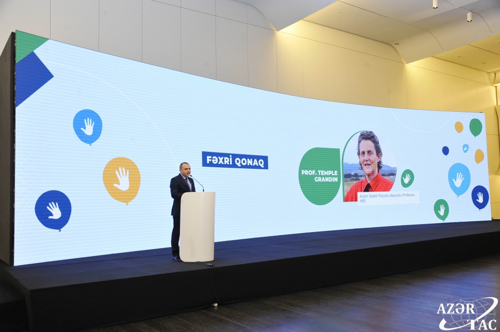 Konfranda videomüraciətlə çıxış edən autizm spektr pozuntu diaqnozlu professor Temple Qrandin öz həyatı barədə danışıb, uşaqlıqda keçirdiyi çətinliklərdən, autizm barədə yazdığı məqalədən danışıb və həyat təcrübələrini bölüşüb.