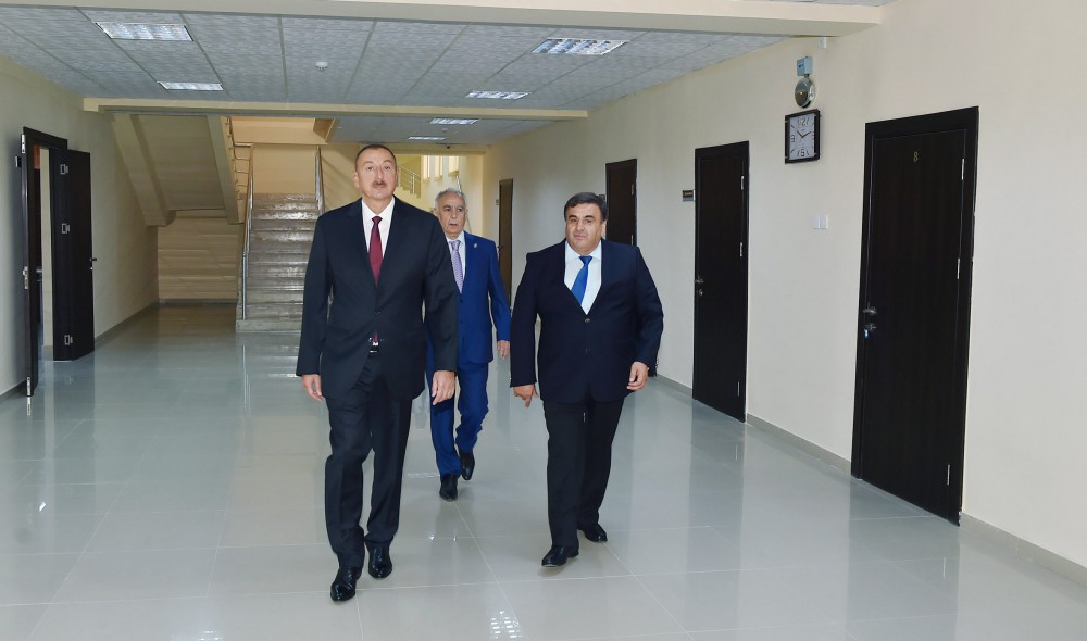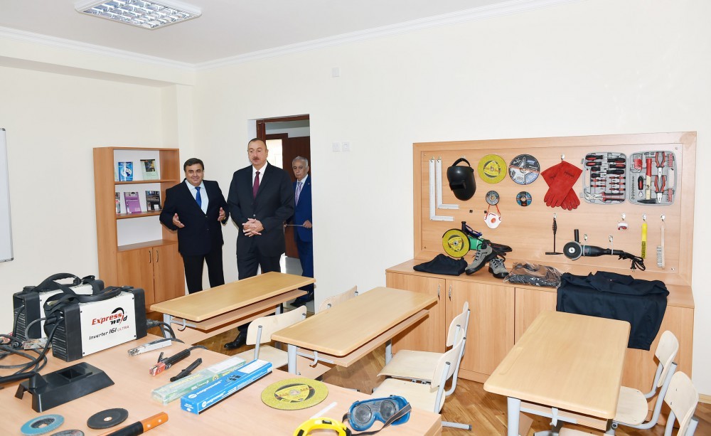 Azərbaycan Prezidenti İlham Əliyev paytaxtın Xətai rayonundakı 5 nömrəli Bakı Peşə Liseyində həyata keçirilən təmir və yenidənqurma işlərindən sonrakı vəziyyətlə tanış olub.